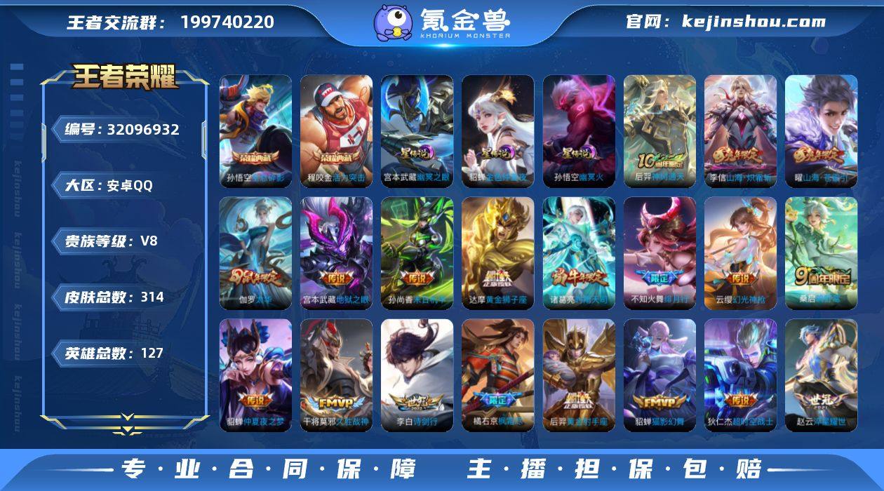 贵族等级:V8 典藏皮肤数:2 珍品无双皮肤数:0 无双皮肤数:0 珍品传说皮肤数:0 传说皮肤数:23 史诗皮肤数:100 皮肤数:314 英雄数:127 段位:钻石 卖家说:安卓苹果都有号 吃鸡 穿越火线都有号 荣耀水晶马上出第三颗目前341绝版皮肤神奇女侠 67万金币