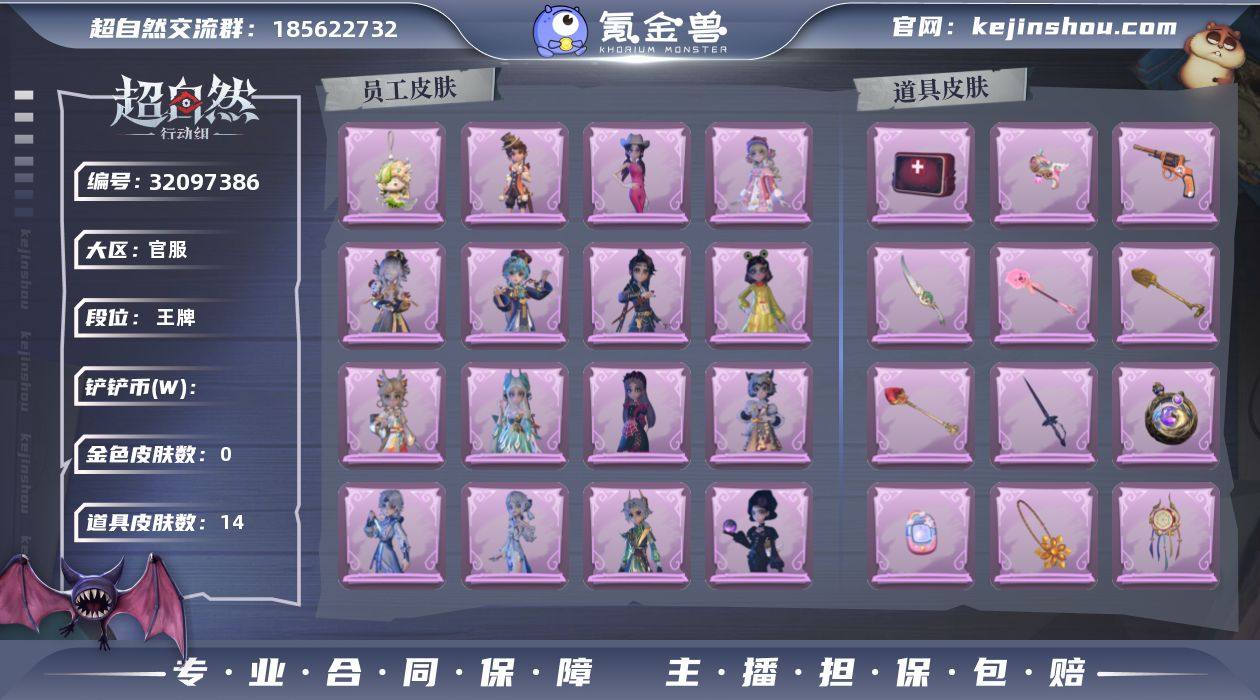 超自然王牌1,有故宫全皮和S3薇薇安豪华魔盒,支持信息换绑,铲铲币300W