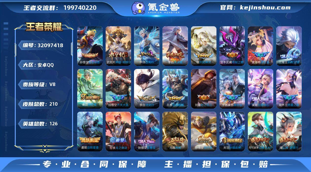 AHC71582,1星元,安卓Q-V8-尊贵铂金II段位-126英雄-210皮肤-1典藏皮肤-1无双-14传说-44史诗 【荣耀典藏】:孙悟空全息碎影 【无双皮肤】:武则天神器明辉仪 【传说皮肤】:桑启鸣野蒿,夏洛特浮生妄,干将莫邪画中仙,花木兰燃星之曲,虞姬无限倾心,孙悟空齐天大圣,吕布怒海麟威,李白诗剑行,兰陵王默契交锋,镜炽阳神光,虞姬启明星使,刘备时之恋人,李白凤求凰,宫本武藏地狱之眼 【限定皮肤】:狄仁杰阴阳师,赵云皇家上将,赵云龙胆,庄周云端筑梦师,钟无艳超时空战士,孙膑天狼运算者,扁鹊奇幻香踪,元歌无心,甄姬落雪兰心,马可波罗山海玄木吟,狄仁杰魔术师,项羽海滩派对,关羽冰锋战神,王昭君午后时光,兰陵王默契交锋,花木兰燃星之曲,孙悟空至尊宝,孙悟空孙行者,孙悟空齐天大圣,李元芳云中旅人,虞姬启明星使,虞姬无限倾心,杨戬潮玩骑兵,干将莫邪画中仙,蔡文姬繁星吟游,鬼谷子五谷丰年,沈梦溪大漠名商,沈梦溪匿光破解者,裴擒虎天狼狩猎者,裴擒虎李小龙,裴擒虎擒涛扼浪,狂铁电玩高手,瑶山海碧波行,上官婉儿神器万象笔,嫦娥暖冬兔眠,鲁班大师探海日志,桑启海盐诗旅,夏洛特浮生妄,暃星界游侠,鬼谷子天穹祈灯,姬小满妄想食味 【年限皮肤】:李白凤求凰,瑶山海碧波行,马可波罗山海玄木吟 【赛季限定】:沈梦溪大漠名商,李元芳云中旅人,桑启海盐诗旅,裴擒虎擒涛扼浪,鲁班大师探海日志,鬼谷子天穹祈灯,东皇太一噬灭天穹,太乙真人谧流熔炉,亚瑟荣光之誓 【战令限定】:狂铁电玩高手,王昭君午后时光,钟无艳超时空战士,甄姬落雪兰心,暃星界游侠,嫦娥暖冬兔眠,扁鹊奇幻香踪,杨戬潮玩骑兵,亚连破空之剑,孙悟空神迹守卫 【史诗皮肤】:狂铁龙之律动,马可波罗星界特工,亚连破空之剑,姬小满妄想食味,刘禅电玩爆裂旋风,沈梦溪匿光破解者,扁鹊奇幻香踪,镜玫...