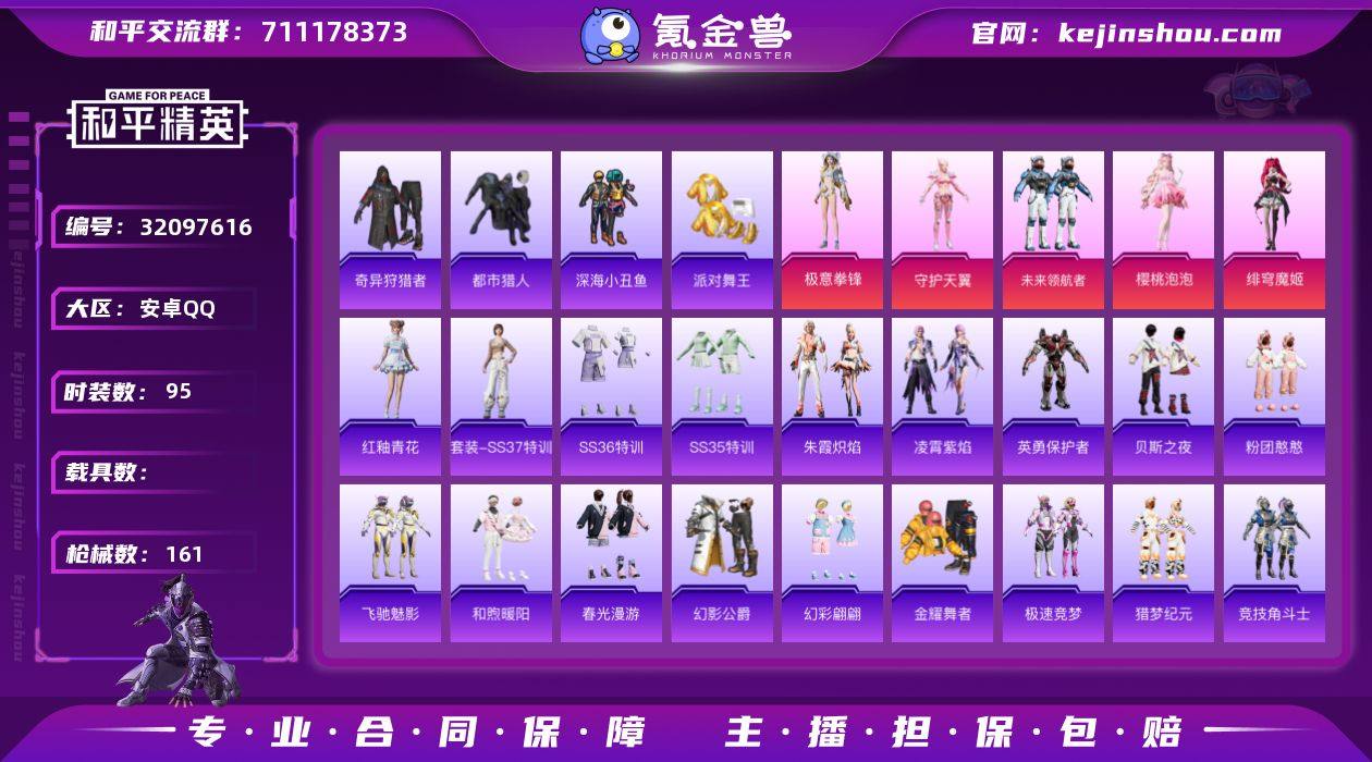 【和平精英】5粉装,13特效枪,1载具,历史最高段位:绝世王牌25星 王牌印记18次 热力值:92396,166套装,296枪械,353装备,150战备;套装:沙丘之主-图卡盟,角色-守护天翼,套装-未来领航者,角色-樱桃泡泡,角色-绯穹魔姬,套装-极意拳锋,套装-蓝色运动,套装-黑色伏地魔,套装-竞技名士,套装-湖蓝色名流,套装-猛禽,套装-长空猛禽,套装-漫步者,套装-黎明保卫者,套装-海岛探路者,套装-沙漠探路者,套装-旭日情侣,套装-都市猎人,套装-浪漫天命,套装-特战装甲,套装-贵族骑装,套装-特殊使命,套装-活力之心,套装-春日漫步,套装-龙腾端午,套装-燃烧卡路里,套装-鹰眼刺客,套装-冰冻风暴,套装-暗金炫舞,套装-都市漫游者,套装-野性战心,套装-森林游猎者,套装-荣耀,套装-沙漠兵团,套装-派对舞王,套装-幻世战舞者,套装-奇异狩猎者,套装-金耀舞者,套装-蓝调潮人,套装-弄潮海豚,套装-迅捷狂鲨,套装-深海小丑鱼,套装-青涩时光,套装-缤纷果语,套装-滨海厨神,套装-龙魂突击队,套装-元素星魂,套装-幻影公爵,套装-格斗先锋,套装-粉红小猪,套装-破蛋小黄鸡,套装-鹤鸣,套装-白熊同盟,套装-萌黄之夏,套装-夏日音浪,套装-探宝勇士,套装-玄武圣者,套装-战术大师,套装-狙击之神,套装-飞行日记,套装-竞技角斗士,套装-曼妙人鱼,套装-热情海星,套装-纯真浪花,角色-英勇保护者,角色-军刀雅典娜,套装-SS19特训,套装-极速竞梦,套装-飞驰魅影,套装-音速流光,套装-炫蓝之夏,套装-SS20特训,套装-粉团憨憨,套装-猎梦纪元,套装-甜心亚梦,套装-虚音幻奏,套装-SS21特训,套装-玉兔迎春,套装-SS22特训,套装-和煦暖阳,套装-田园牧歌,套装-轻风白浪,套装-光之冒险,套装-绯格组合,套装-SS23特训,套装-香榭午后,套装-神气柴柴,套装-懵萌河马,套装-妙红点点,套装-幻彩翩...