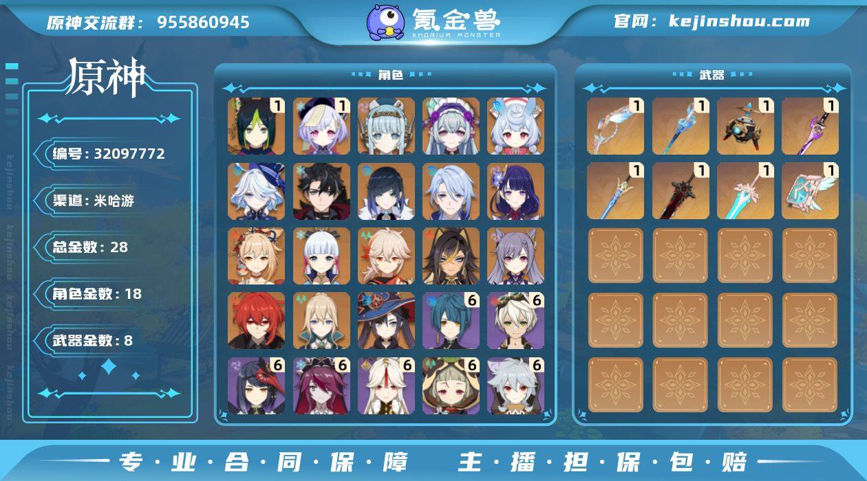 冒险等级:59 总黄数:28 5星角色数:18 5星武器数:8 原石数量:0 相遇之缘数量:0 纠缠之源数量:0 1命提纳里,1命七七,0命伊涅芙,0命梦见月瑞希,0命希格雯,0命芙宁娜,0命莱欧斯利,0命夜兰,0命神里绫人,0命雷电将军,0命宵宫,0命神里绫华,0命枫原万叶,0命迪希雅,0命刻晴,0命迪卢克,0命琴,0命莫娜 6命班尼特,6命行秋,6命九条裟罗,6命雷泽,6命罗莎莉亚,6命凝光,6命早柚,5命诺艾尔,5命瑶瑶,4命琳妮特,4命香菱,4命珐露珊,4命米卡,4命砂糖,3命菲米尼,3命多莉,2命久岐忍,2命芭芭拉,2命菲谢尔,2命云堇,1命绮良良,1命夏洛蒂,1命伊法,1命北斗,1命凯亚,1命卡维,1命柯莱,1命莱依拉,1命五郎,0命爱诺,0命嘉明,0命卡齐娜,0命蓝砚,0命赛索斯,0命夏沃蕾,0命安柏,0命迪奥娜,0命坎蒂丝,0命丽莎 精1白雨心弦,精1静水流涌之辉,精1金流监督,精1雾切之回光,精1苍古自由之誓,精1狼的末路,精1天空之傲,精1天空之卷 100%侦察骑士,古恩希尔德的传承,帆影游风,倩影游侠,星与月之约,雨化竹身,叶隐芳名,致教会自由人