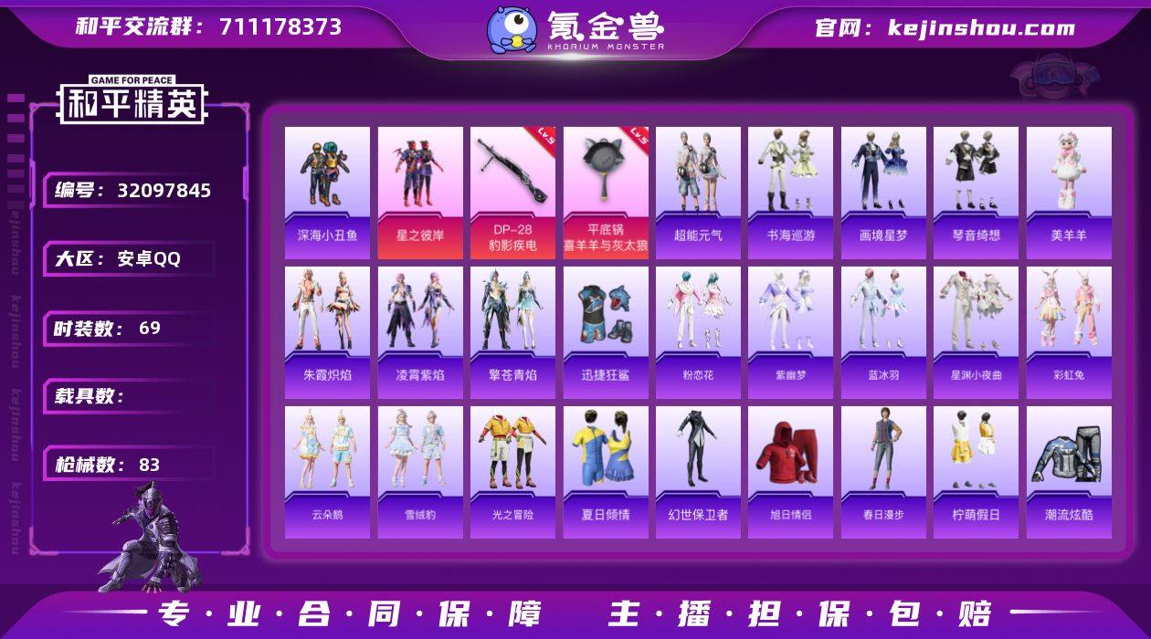 安卓 手Q-1粉装-3特效枪-0载具-1粉色飞行器-24179热力值-5王牌印记-69套装-83枪皮【热门品类】:套装-深海小丑鱼【粉色套装】:粉装-星之彼岸【粉色枪皮等级】:Mk14-福马献瑞(一级),DP-28-豹影疾电(五级),平底锅-喜羊羊与灰太狼(七级)【粉色枪皮】:Mk14-福马献瑞,DP-28-豹影疾电,平底锅-喜羊羊与灰太狼【粉色飞行器】:炫彩糖果飞行器【粉色降落伞】:千金淑猫降落伞,喜羊羊与灰太狼降落伞,炫彩糖果降落伞,暮色玫影降落伞【稀有套装】:套装-超能元气,套装-雪国风尚,套装-炫彩糖果,套装-马上来财,套装-粉恋花,套装-紫幽梦,套装-蓝冰羽,套装-星渊小夜曲,套装-彩虹兔,套装-云朵鹅,套装-雪绒豹,套装-朱霞炽焰,套装-凌霄紫焰,套装-擎苍青焰,玩偶服-美羊羊,套装-书海巡游,套装-画境星梦,套装-琴音绮想【稀有枪皮】:AUG-冰晶雪宝,AKM-星之彼岸,SCAR-L-玉兔迎春,M762-云朵鹅,蜜獾-天降萌叽,ACE32-画境星梦,ARX-凌霄紫焰,Vector-生命誓言,MP5K-画境星梦,JS9-凌霄紫焰,SKS-迅猛狂鲨,Mini14-穿刺龙虾,SVD-云朵鹅,M1加兰德-画境星梦,S12K-智耀战神,DBS-幻彩电音,AA12-G-画境星梦,SPAS-12-云朵鹅,M249-糯团青竹,MG-36-凌霄紫焰,P92-凌霄紫焰,短管霰弹-星穹咏叹调,沙漠之鹰-云朵鹅,爆炸猎弓-喜羊羊与灰太狼,大砍刀-云朵鹅,平底锅-凌霄紫焰,平底锅-画境星梦【其他套装】:套装-光之冒险,套装-夏日倾情,套装-幻世保卫者,套装-旭日情侣,套装-春日漫步,套装-柠萌假日,套装-潮流炫酷,套装-灼焰舞者,套装-特战装甲,套装-玉兔迎春,套装-王牌教练,套装-白色伏地魔,套装-绮丽涂鸦,套装-蓝色运动,套装-街头潮人,套装-超能勇士,套装-都市魅力,套装-长空猛禽,套装-魅力单车,套装-深海小丑鱼,套装-迅捷狂鲨,套装-弄潮海豚,套装-星梦畅游【稀有头盔】:深海小丑...