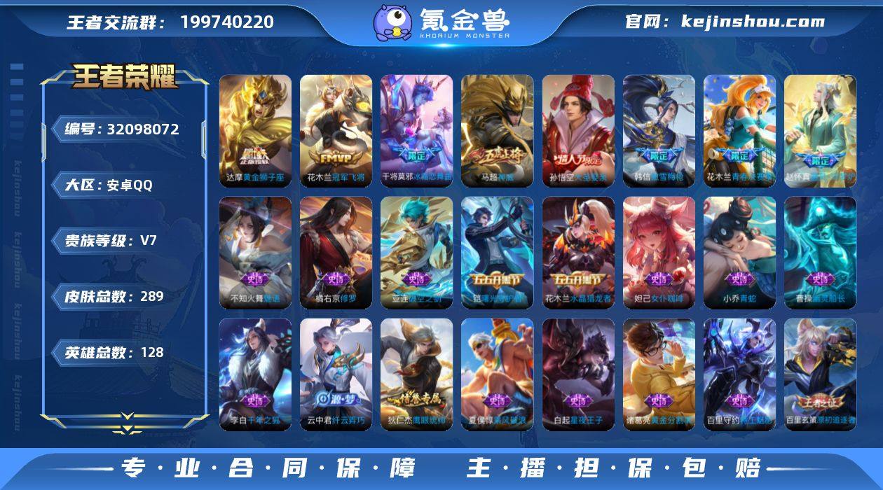 英雄 289皮肤 可修改实名 男号 【英雄全皮】蚩奼全皮,大禹全皮 【稀有英雄】敖隐(小龙人),大司命,嬴政(始皇帝),韩信(韩跳跳),夏洛特(夏师傅),艾琳,橘右京(橘子),娜可露露(鸟人),不知火舞,赵云,金蝉(唐僧),戈娅 【传说皮】神树通天,黄金狮子座,末日机甲-孙尚香(绿蚂蚱),冠军飞将 【珍宝阁皮】妄想食味,蔷薇恋人,玩趣恶龙 【赛季/战令皮】噬灭天穹(s37),古海寻踪(s33),星界游侠,海盐诗旅(s30),擒涛扼浪(s31),探海日志(s32),流音漫舞,地狱燃心,剑破天穹(s35),天穹祈灯(s34),天穹之誓(s36),暖冬·兔眠,凯尔特女王(s7),狰(s8),饕餮(s9),烛龙(s10),重明(s11),穷奇(s12),御霄(s14),御旌(s15),御銮(s16),醍醐杖(s20),原初探秘者(s21),万华元夜(s22),演武夺筹(s23),驱傩正仪(s24),千军破阵(s25),猎兽之王,朔望之晖,蓝屏警告,单词大作战,狂想玩偶喵,潮玩骑士王,云间偶戏,神迹守卫-墨子,航海奇遇记,圣弓游侠,真爱魔法,沙漠行僧(s26),金庭之子(s27),电玩高手(电玩铁子),午后时光,大漠名商(s28),云中旅人(s29),超时空战士-钟无艳,落雪兰心 【史诗皮】破空之剑,星界战将,器灵·浮梦炉,线条小狗-周瑜,九幽镇关,线条小狗-小乔,紫霞仙子,苍穹之光,黄金分割率,特工魅影,千年之狐,江河有灵,蒙恬荣光圣徽,百解令(蒙犽),高渐离燃音魔法,冰冠公主,青蛇,魅语,猫狗日记-孙策,乱世虎臣,节奏热浪,修罗,女仆咖啡,摇滚巨星,水果甜心,绅士熊喵,天才门将,星夜王子,功夫厨神,德古拉伯爵,暗隐猎兽者,幽灵船长,鬼剑武藏,心灵战警,舞动绿茵,地狱岩魂,纤云弄巧,繁星吟游(呼啦呼啦),缤纷独角兽,乘风破浪,逐浪之夏,水晶猎龙者,曙光守护者,金属风暴,原初追逐者,圣诞狂欢,圣诞恋歌,鹰眼统帅,魅力维加斯,黎明之约,无心,未来纪元-赵云 【限定皮】愿照·九州拓(澜年限),鸣野蒿,傲雪梅枪,绯月行,时雨天司(水龙头),神威
