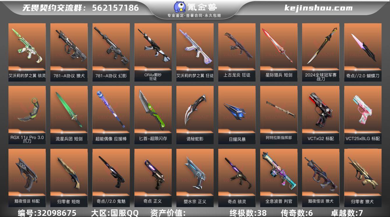 【PTWW3042】终极*38/传奇*6/卓越*7/皮肤*173/等级*164/段位:黄金/2024全球冠军赛套装/奇点//2.0套装/黯夜怪谈套装/神中神罚套装/幻棱/炼狱/维斯/暮蝶/钛狐/壹决/铁臂/捷风/雷兹/幽影/不死鸟/贤者/猎枭/蝰蛇/零/芮娜/奇乐/尚勃勒/霓虹/斯凯/夜露/星礈/K/O/海神/盖可/黑梦/钢锁/战刀-2024全球冠军赛/近战武器-碎心裂刃/神之刃/蝴蝶刀-奇点//2.0/爪刀-RGX 11z Pro 3.0/短剑-流星兵团/超能偶像 应援棒/匕首-超限闪存/夜刃诡镰/诡秘蛇影/日耀风暴/阿特拉斯指挥部/星际猎兵 短剑/2025全球冠军赛 狂徒/狂徒-洪荒怒焰/狂徒-混沌序曲/狂徒-奇点//2.0/狂徒-双城之战/狂徒-ORAx颗秒/狂徒-艾沃莉的梦之翼/狂徒-上古龙炎/狂徒-盖世英雄/狂徒-紫阙金琅/狂徒-超能偶像/狂徒-流星兵团/狂徒-诡秘蛇影/幻影-2024全球冠军赛/幻影-黯夜怪谈/幻影-千灵华绽/幻影-781-A协议/幻影-神中神罚/幻影-超限闪存/幻影-神圣领域/幻影-聚合之力/幻影-末日之翼/戍卫-破败军械/戍卫-超能偶像/戍卫-浮光跃金/戍卫-战术熊与伙伴们/戍卫-月球哨兵/戍卫-折光棱晶/獠犬-黯夜怪谈/獠犬-归零者/獠犬-781-A协议/獠犬-神圣领域/獠犬-采蜜小蜂队/獠犬-模拟赫兹/獠犬-逆冲蛮牛/冥驹-千灵华绽/冥驹-荒土机兵/冥驹-模拟赫兹/飞将-黯夜怪谈/飞将-西部未来/飞将-聚合之力/飞将-战术熊与伙伴们/飞将-末日之翼/莽侠-神中神罚/莽侠-超限闪存/莽侠-诡秘蛇影/莽侠-纤云弄巧/莽侠-月球哨兵/战神-奇点/战神-神圣领域/战神-采蜜小蜂队/战神-浮光跃金/奥丁-砰砰X特攻队/奥丁-流星兵团/奥丁-末日之翼/判官-全息波普/判官-超能偶像/判官-诡秘蛇影/判官-采蜜小蜂队/判官-纳米打击x/雄鹿-模拟赫兹/雄鹿-逆冲蛮牛/雄鹿-月球哨兵/骇灵-奇点/骇灵-艾沃莉的梦之翼/骇灵-神中神罚/骇灵-荒土机兵/骇灵-流星兵团/骇灵-无限竞技/骇灵-浮光跃金/骇灵-星云暗涌/蜂刺-超限闪存/蜂刺-聚合之力...