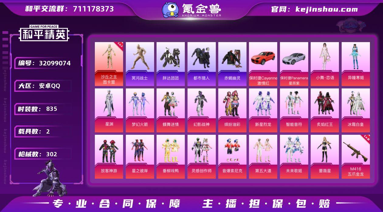 【主播推荐】实名: 可修改 时装数: 835 载具数: 2 枪械数: 302 战备数: 226 神级装扮: 沙丘之主-图卡盟 热门装扮: 梦幻火箭(新101),蝶舞迷情,幻影战神,浪漫波比,放客神游,鹰眼刺客,智能音符,缤纷油彩,都市猎人,炙焰红王,冰霜白皇,新星烈龙,星之彼岸,冥河战士,垂柳戏鸭,灵感创作师,胖达团团,音爆索尼克,赤蝎幽灵,第五大道,未来歌姬,蔷薇星,星渊,异瞳寒姬,小舞·恋语 载具: 保时捷Panamera(星辰紫),保时捷Cayenne(激情红) 稀有枪皮: M416五爪金龙,AUG星之彼岸,AKM梦之光华,M16A4垂柳戏鸭,SCAR-L纯梦嫁纱,M417第五大道,AUG超新星,爆炸猎弓-拳皇·狂花道,Kar98K-巳巳如意,DP-28-豹影疾电,蜜獾-异瞳寒姬,M416-天马神君