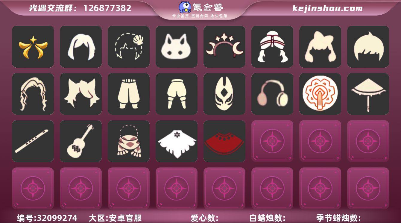 账号类型: 邮箱账号 季节已毕业: 欧若拉季 完成地图: 晨岛,云野,雨林,霞谷,暮土,禁阁,全图毕业 珍稀物品: 透明蝶翼斗 礼包: 奔跑发型,贝壳,兔子,星月头饰 裤子: 武士裤,白棉裤 面具: 红狐狸 面饰: 红耳机 项链: 围巾 发型: 蝴蝶结,正太,公主头,虚荣,猫耳 斗篷: 红金,白鸟斗 配饰: 雨伞,吉他,笛子,乐器