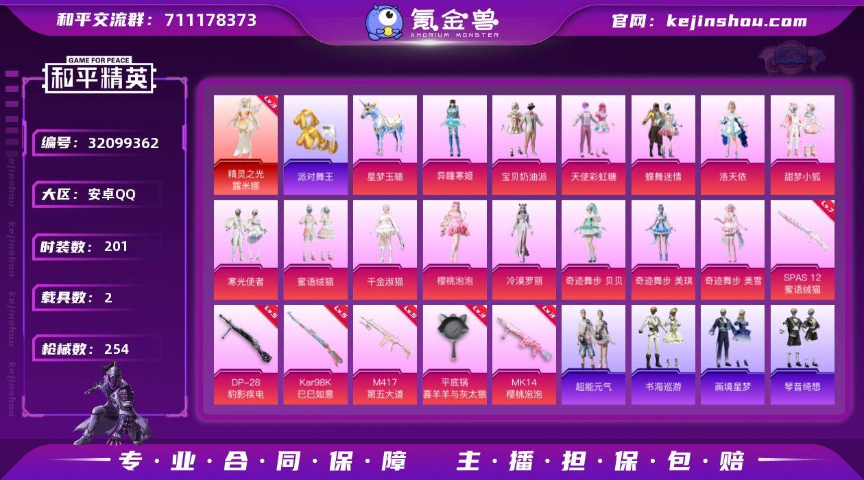 "h10371[红装少萝号] 1红 14粉 8特 2载具 3级露米娜 甜梦小狐 蝶舞迷情 派对舞王 红熊茄茄 千金淑猫 糯粉咩咩 兔兔白日梦 7蜜语绒猫 5第五大道 3樱桃泡泡 暮色幽蹄" 安卓 手Q-1神装-14粉装-8特效枪-2载具-4粉色飞行器-81256热力值-12王牌印记-201套装-254枪皮 【红色神装等级】:精灵之光-露米娜(三级) 【红色角色神装】:精灵之光-露米娜 【热门品类】:套装-浪漫天命,套装-派对舞王,套装-龟仙人,套装-糯粉咩咩,角色-Mark.06,套装-红熊茄茄 【粉色套装】:粉装-宝贝奶油派,粉装-天使彩虹糖,粉装-蝶舞迷情,角色-洛天依,粉装-甜梦小狐,粉装-寒光使者,粉装-蜜语绒猫,角色-千金淑猫,角色-樱桃泡泡,角色-冷漠罗丽,角色-奇迹舞步 贝贝,角色-奇迹舞步 美琪,角色-奇迹舞步 美雪,角色-异瞳寒姬 【粉色枪皮等级】:UMP45-萌骑冒险(四级),Kar98K-巳巳如意(五级),Mk14-樱桃泡泡(三级),Mk14-福马献瑞(一级),M417-第五大道(五级),SPAS-12-蜜语绒猫(七级),DP-28-豹影疾电(五级),平底锅-喜羊羊与灰太狼(三级) 【粉色载具】:星梦玉骢,暮色幽蹄 【粉色枪皮】:UMP45-萌骑冒险,Kar98K-巳巳如意,Mk14-樱桃泡泡,Mk14-福马献瑞,M417-第五大道,SPAS-12-蜜语绒猫,DP-28-豹影疾电,平底锅-喜羊羊与灰太狼 【粉色飞行器】:炫彩糖果飞行器,幽焰列车飞行器,极意拳锋飞行器,暮色之舞飞行器 【粉色降落伞】:甜心宝贝降落伞,春暖花开降落伞,洛神天依降落伞,甜梦小狐降落伞,第五大道降落伞,萌物绒绒降落伞,炫光之旅降落伞,蜜语绒猫降落伞,守护天翼降落伞,金丰海韵降落伞,忍者神龟降落伞,拳皇·狂花道降落伞,未来领航者降落伞,精灵之光降落伞,幽焰骑士降落伞,千金淑猫降落伞,樱桃泡泡降落伞,智耀战神降落伞,时光之誓降落伞,奇迹舞步降落伞,喜羊羊与灰太狼降落伞,炫彩糖果降落伞,霁蓝...