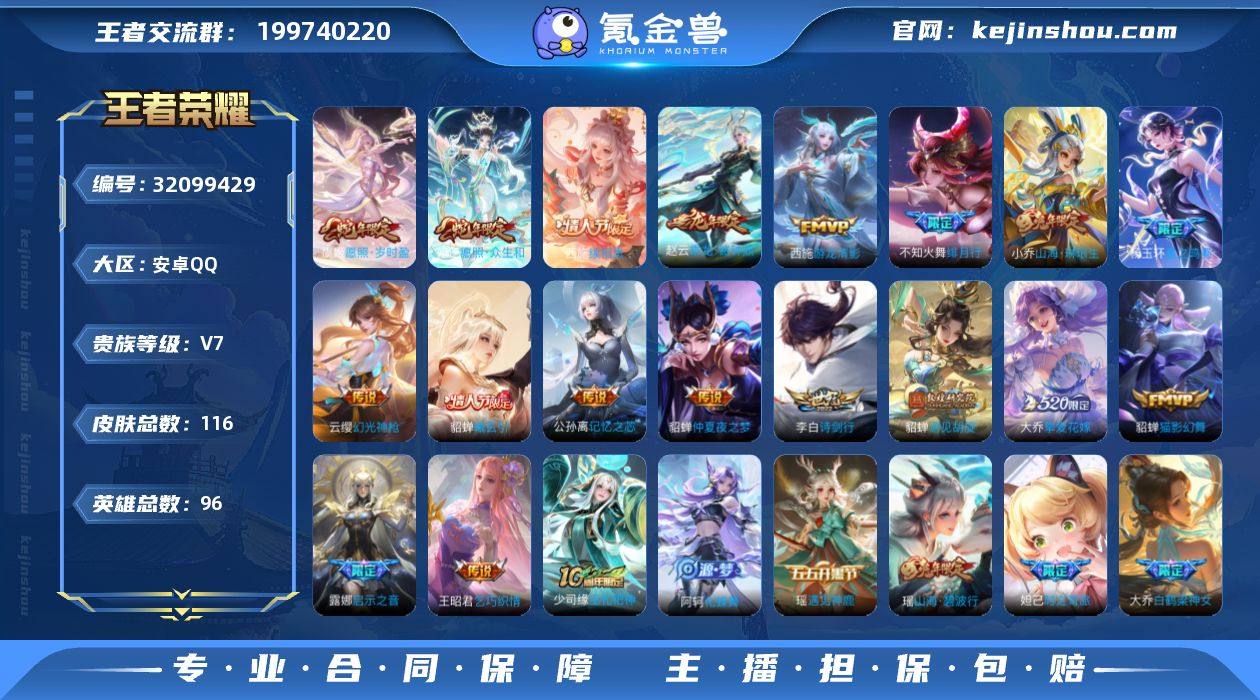 V7-96英雄-116皮肤-18传说-30史诗 精品小女号 YH7061 【传说皮肤】:西施续相思,杨玉环星之鸣奏,妲己愿照众生和,虞姬愿照岁时盈,云缨幻光神枪,貂蝉曦玄引,赵云乘龙铭钟鼎,公孙离记忆之芯,小乔山海琳琅生,李白诗剑行,不知火舞绯月行,大乔挚爱花嫁,露娜启示之音,貂蝉遇见胡旋,王昭君乞巧织情,西施游龙清影,貂蝉猫影幻舞,貂蝉仲夏夜之梦 【限定皮肤】:狄仁杰阴阳师,小乔山海琳琅生,赵云皇家上将,妲己时之奇旅,孙尚香蔷薇恋人,钟无艳超时空战士,元歌无心,甄姬落雪兰心,狄仁杰魔术师,项羽海滩派对,貂蝉遇见胡旋,露娜启示之音,王昭君午后时光,兰陵王金庭之子,不知火舞绯月行,李元芳云中旅人,女娲朔望之晖,鬼谷子五谷丰年,大乔白鹤梁神女,大乔挚爱花嫁,沈梦溪大漠名商,裴擒虎擒涛扼浪,狂铁电玩高手,瑶山海碧波行,上官婉儿神器万象笔,嫦娥暖冬兔眠,鲁班大师探海日志,桑启海盐诗旅,暃星界游侠,张良古海寻踪,鬼谷子天穹祈灯,赵云乘龙铭钟鼎,貂蝉曦玄引,沈梦溪龙舞盛年,鲁班七号蔬乡物语,李元芳蔬乡物语,刘邦剑破天穹 【年限皮肤】:小乔山海琳琅生,瑶山海碧波行,赵云乘龙铭钟鼎,妲己愿照众生和,虞姬愿照岁时盈 【赛季限定】:兰陵王金庭之子,沈梦溪大漠名商,李元芳云中旅人,桑启海盐诗旅,裴擒虎擒涛扼浪,鲁班大师探海日志,张良古海寻踪,鬼谷子天穹祈灯,刘邦剑破天穹,东皇太一噬灭天穹,太乙真人谧流熔炉 【战令限定】:女娲朔望之晖,狂铁电玩高手,王昭君午后时光,钟无艳超时空战士,甄姬落雪兰心,暃星界游侠,嫦娥暖冬兔眠,鲁班七号蔬乡物语,李元芳蔬乡物语 【史诗皮肤】:少司缘巫礼祀神,阿轲化蝶舞,明世隐夜落电台,鲁班七号蔬乡物语,杨玉环银翎春语,瑶山海碧波行,暃星界游侠,元歌无心,上官婉儿神器万象笔,鬼谷子五谷丰年,妲己时之奇...