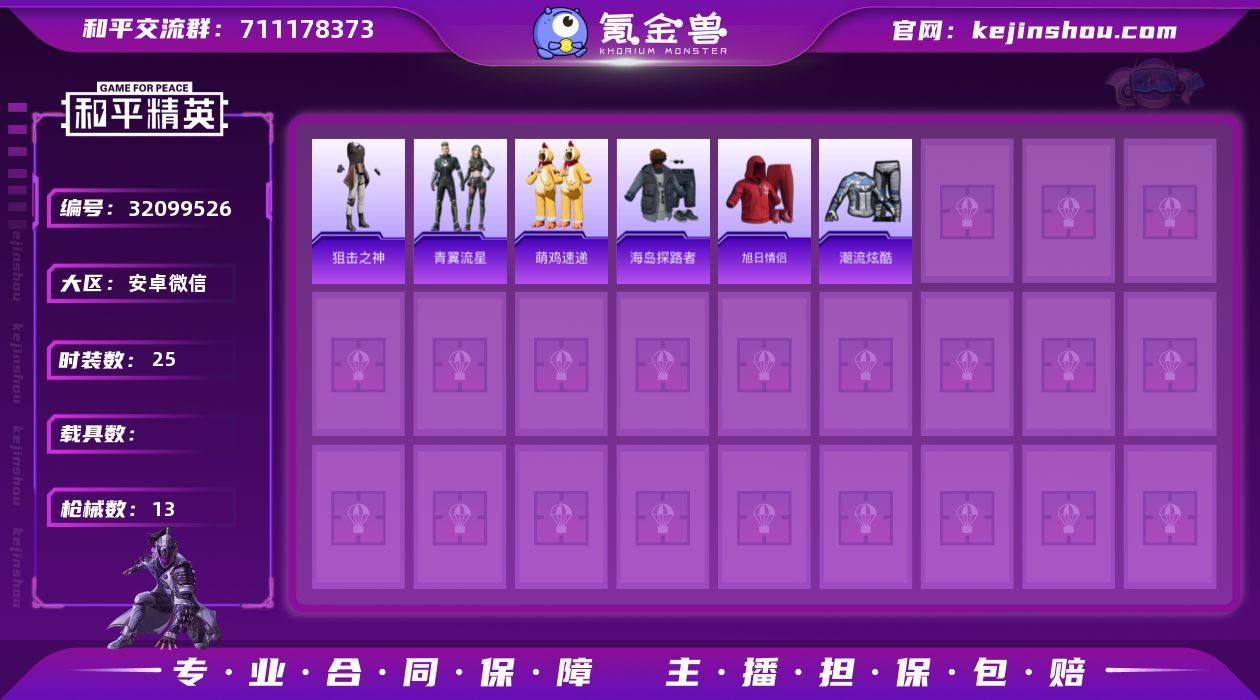 实名:可二次实名 是否支持人脸包赔:支持 时装数:25 枪械数:13 狙击之神,青翼流星,萌鸡速递,潮流炫酷,海岛探路者,旭日情侣 炫彩糖果降落伞,精灵梦叶罗丽降落伞 卖家说:吃顿修仙轮回六次,现在是5.6载有m4,地铁也有装备,段位也很高的,现在已经10星