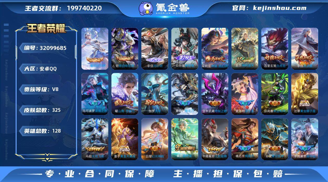 【李信无双问心剑 公孙离无双 2典藏22传说 男神爽号!!】安卓Q-V8-最强王者段位-128英雄-325皮肤-2典藏皮肤-2无双-22传说-88史诗 【英雄全皮】:橘右京全皮,狂铁全皮,敖隐全皮,夏洛特全皮 【荣耀典藏】:铠银白咏叹调,伽罗最初的交响 【无双皮肤】:李信问心剑,公孙离离恨烟 【传说皮肤】:朵莉亚神骥鸣幻洲,后羿神树通天,云缨幻光神枪,桑启鸣野蒿,夏侯惇霜北刀,墨子黄金天蝎座,夏洛特浮生妄,干将莫邪画中仙,曜山海苍雷引,橘右京枫霜尽,马可波罗深海之息,马超无双飞将,孙策末日机甲,虞姬启明星使,伽罗太华,干将莫邪久胜战神,达摩黄金狮子座,百里玄策白虎志,李白凤求凰,孙尚香末日机甲,宫本武藏地狱之眼,狄仁杰超时空战士 【限定皮肤】:白起狰,公孙离离恨烟,夏侯惇霜北刀,暃埋骨钱,蔡文姬夏日便利店,大乔绒语心约,虞姬夏日便利店,姜子牙天穹之誓,杨戬破阵退雄兵,李白谪仙醉月,狄仁杰阴阳师,虞姬凯尔特女王,赵云皇家上将,墨子神迹守卫,妲己时之彼端,嬴政白昼王子,庄周高山流水,高渐离死亡摇滚,高渐离玩趣恶龙,阿轲迷踪丽影,钟无艳超时空战士,芈月重明,芈月幻夜卜梦,吕布猎兽之王,周瑜赤莲之焰,元歌云间偶戏,夏侯惇朔风刀,夏侯惇匿光决锋者,甄姬游园惊梦,甄姬落雪兰心,曹操烛龙,马可波罗暗影游猎,马可波罗深海之息,狄仁杰魔术师,狄仁杰万华元夜,达摩星际陆战队,达摩沙漠行僧,项羽海滩派对,老夫子醍醐杖,老夫子航海奇遇记,程咬金演武夺筹,刘邦夺宝奇兵,韩信逐梦之影,王昭君午后时光,兰陵王驯魔猎人,兰陵王金庭之子,橘右京枫霜尽,亚瑟潮玩骑士王,孙悟空至尊宝,后羿圣弓游侠,李元芳银河之约,李元芳云中旅人,虞姬启明星使,钟馗驱傩正仪,女娲朔望之晖,干将莫邪真爱魔法,干将莫邪画中仙,雅典娜单词大作战,雅典娜黎明之约,蔡文姬繁...