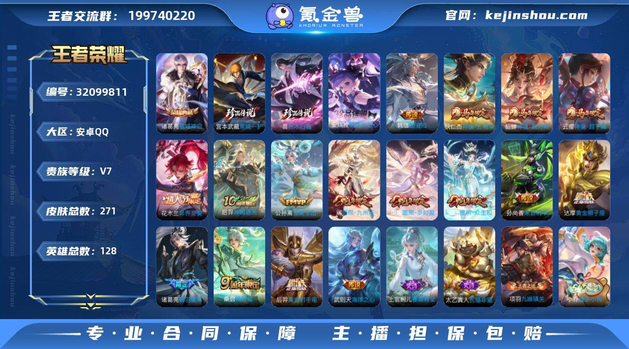 【秒换绑】安卓Q-V7-最强王者段位-128英雄-271皮肤-1典藏皮肤-3珍品传说-16传说-90史诗 【英雄全皮】:孙权全皮,敖隐全皮,阿古朵全皮,空空儿全皮 【荣耀典藏】:诸葛亮星域神启 【珍品传说】:宫本武藏黑崎一护,暃朽木白哉,安琪拉酷洛米之心 【传说皮肤】:韩信踏浪归,云缨神骥越千峰,狄仁杰神骥赴朔漠,貂蝉神骥聚万邦,花木兰异界灵契,后羿神树通天,公孙离云诺千山,妲己愿照众生和,澜愿照九州拓,虞姬愿照岁时盈,桑启鸣野蒿,诸葛亮鹤羽星尊,达摩黄金狮子座,后羿黄金射手座,孙尚香末日机甲,武则天海洋之心 【限定皮肤】:蒙犽顽岩魄,大乔绒语心约,姜子牙天穹之誓,李白谪仙醉月,狄仁杰阴阳师,赵云皇家上将,妲己时之奇旅,阿轲迷踪丽影,狄仁杰魔术师,达摩沙漠行僧,项羽海滩派对,兰陵王金庭之子,李元芳云中旅人,女娲朔望之晖,诸葛亮鹤羽星尊,梦奇顽趣,沈梦溪大漠名商,裴擒虎擒涛扼浪,云中君纤云弄巧,上官婉儿梁祝,上官婉儿神器万象笔,嫦娥拒霜思,西施玲珑珍味,鲁班大师探海日志,桑启海盐诗旅,艾琳流音漫舞,阿古朵江河有灵,张良古海寻踪,蒙犽百解令,高渐离燃音魔法,妲己灵卜魔法,鬼谷子天穹祈灯,姬小满妄想食味,安琪拉乘龙聚宝船,沈梦溪龙舞盛年,鲁班七号蔬乡物语,李元芳蔬乡物语,刘邦剑破天穹,上官婉儿群星魔术团,程咬金群星魔术团,周瑜熔金海岸 【年限皮肤】:安琪拉乘龙聚宝船,妲己愿照众生和,澜愿照九州拓,虞姬愿照岁时盈 【赛季限定】:达摩沙漠行僧,兰陵王金庭之子,沈梦溪大漠名商,李元芳云中旅人,桑启海盐诗旅,裴擒虎擒涛扼浪,鲁班大师探海日志,张良古海寻踪,鬼谷子天穹祈灯,刘邦剑破天穹,姜子牙天穹之誓,东皇太一噬灭天穹,太乙真人谧流熔炉,钟馗虚灵犬护,甄姬逆浪荇歌,亚瑟荣光之誓,梦奇顽趣,牛魔星界战将,项羽九幽镇关 【战...