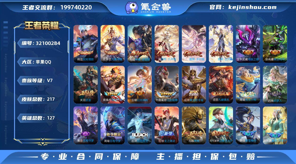 【WZYH935】贵族7/皮肤217/典藏2/传说11/史诗50/英雄127/敖隐全皮/空空儿全皮/影全皮/九霄神辉/弑枪猎影/马超神骥逐星野/愿照·山河定/愿照·九州拓/愿照·岁时盈/幻光神枪/祥瑞亨通/武圣/久胜战神/黄金射手座/末日机甲-孙尚香/地狱之眼/蔡文姬夏日便利店/虞姬夏日便利店/天穹之誓(s36)/阴阳师/皇家上将/高山流水/玩趣恶龙/赤莲之焰/无心/朔风刀(s17)/山海·玄木吟/魔术师/沙漠行僧(s26)/海滩派对/醍醐杖(s20)/傲雪梅枪/午后时光/驯魔猎人/金庭之子(s27)/圣弓游侠/云中旅人(s29)/驱傩正仪(s24)/真爱魔法/五谷丰年/千军破阵(s25)/混沌棋(s18)/顽趣-梦奇/大漠名商(s28)/疑决卦(s19)/李小龙/擒涛扼浪(s31)/电玩高手/御霄(s14)/梁祝/拒霜思/暖冬·兔眠/探海日志(s32)/海盐诗旅(s30)/星界游侠/女武神/古海寻踪(s33)/鬼谷子天穹祈灯(S34)/剑破天穹(s35)/谧流熔炉/虚灵犬护/逆浪荇歌/九幽镇关/百相守梦-老夫子/茶境仙/访茗客/百相守梦-周瑜/百相守梦-孙策/线条小狗-周瑜/织梦人/百相守梦-黄忠/石田雨龙/龙之律动/器灵·浮梦炉/星界特工/暗渊魔法/时之恋人-孙尚香/神威/魅语/鹰眼统帅/箭羽风息/节奏热浪/功夫厨神/天才门将/舞动绿茵/曙光守护者/特工魅影/暗隐猎兽者/乘风破浪/德古拉伯爵/幽灵船长/圣诞狂欢/金属风暴/女仆咖啡/摇滚巨星/水果甜心/鬼剑武藏/偶像歌手/圣诞恋歌/紫霞仙子/极光幻客/克喵/踏浪烽翎/戏梦巡演/锦麟游梦/云械蓝图/死霸装/灵野札记/灵卦秘语/爆裂喵拳/金福满堂/星梦巡礼/魅影绮裳/铁骨偃魂/苍林狼骑/长夏之忆/经纬探寻者/功夫炙烤/完美运算/破局者/零食大作战/西部游侠/太极少年/潮玩探月行/幻泉雾影-海月/危途狂花/蔚蓝守将/胡桃狂想曲/唤灵魔甲/刘邦虎啸剑宗/无双福将/紫罗兰之誓/铁甲之心/乓乓大师/重装意志/秘密基地/特工战影/圆桌骑士(盾山)/次元突破/炽热元素使/鲨炮海盗猫/丁香结/虹云星官/幻乐...