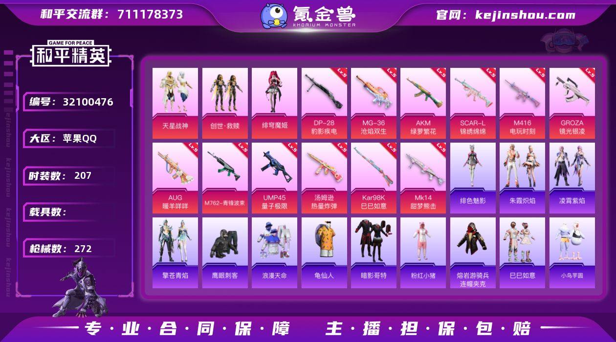 苹果 手Q-3粉装-14特效枪-0载具-6粉色飞行器-79465热力值-12王牌印记-207套装-272枪皮 【热门品类】:套装-浪漫天命,套装-龟仙人,套装-暗影哥特,套装-粉红小猪,熔岩游骑兵连帽夹克 【粉色套装】:粉装-天星战神,套装-创世·救赎,角色-绯穹魔姬 【粉色枪皮等级】:AKM-绿萝繁花(五级),SCAR-L-锦绣绵绵(五级),M416-电玩时刻(五级),GROZA-镜光银凌(五级),AUG-暖羊咩咩(五级),M762-青锋波束(五级),ACE32-萌骑漫游(四级),UMP45-量子极限(五级),汤姆逊-热量炸弹(五级),Kar98K-巳巳如意(五级),Mk14-甜梦熊击(五级),Mk14-福马献瑞(五级),DP-28-豹影疾电(五级),MG-36-沧焰双生(五级) 【粉色枪皮】:AKM-绿萝繁花,SCAR-L-锦绣绵绵,M416-电玩时刻,GROZA-镜光银凌,AUG-暖羊咩咩,M762-青锋波束,ACE32-萌骑漫游,UMP45-量子极限,汤姆逊-热量炸弹,Kar98K-巳巳如意,Mk14-甜梦熊击,Mk14-福马献瑞,DP-28-豹影疾电,MG-36-沧焰双生 【粉色飞行器】:炫彩糖果飞行器,齐天大圣飞行器,镜光幻境飞行翼,繁龙极客飞行器,霓虹漫游飞行器,英伦信使飞行器 【粉色降落伞】:洛神天依降落伞,暗夜鎏金降落伞,忍者神龟降落伞,英伦信使降落伞,绯穹魔姬降落伞,极意拳锋降落伞,炫彩糖果降落伞,罪夜之冕降落伞 【稀有套装】:套装-龟仙人,套装-巳巳如意,套装-小鸟芋圆,套装-雪国风尚,套装-炫彩糖果,套装-马上来财,套装-雏菊兔兔,套装-萝兰蝴蝶,套装-小熊娃娃,套装-火种守卫者,套装-糖糖葫芦,套装-青团波波,套装-棉花软糖,套装-燕燕于飞,套装-鱼渊荷华,角色-海琴烟,套装-粉恋花,套装-紫幽梦,套装-蓝冰羽,套装-星渊小夜曲,套装-彩虹兔,套装-云朵鹅,套装-雪绒豹,套装-蜜露汐语,角色-绛羽幽主,套装-朱霞炽焰,套装-凌霄紫焰,套装-擎苍青焰,角色-绯色魅影 【稀有枪皮】:AUG-冰晶雪宝...