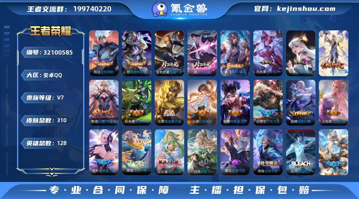 王者19275,不可二次,安卓Q-V7-永恒钻石V段位-128英雄-310皮肤-2典藏皮肤-3珍品传说-10传说-93史诗 【英雄全皮】:达摩全皮,孙权全皮,空空儿全皮 【荣耀典藏】:铠银白咏叹调,韩信弑枪猎影 【珍品传说】:张飞兔狲蓬尾,暃朽木白哉,宫本武藏黑崎一护 【传说皮肤】:司空震愿照山河定,云缨幻光神枪,花木兰燃星之曲,孙悟空齐天大圣,李信山海炽霜斩,王昭君乞巧织情,貂蝉猫影幻舞,达摩黄金狮子座,貂蝉仲夏夜之梦,孙尚香末日机甲 【限定皮肤】:蒙犽顽岩魄,姜子牙天穹之誓,杨戬破阵退雄兵,狄仁杰阴阳师,赵云皇家上将,孙尚香蔷薇恋人,庄周高山流水,高渐离玩趣恶龙,钟无艳超时空战士,芈月幻夜卜梦,元歌云间偶戏,元歌无心,甄姬落雪兰心,马可波罗暗影游猎,狄仁杰魔术师,狄仁杰万华元夜,达摩星际陆战队,达摩沙漠行僧,项羽海滩派对,老夫子醍醐杖,关羽冰锋战神,貂蝉逐梦之音,程咬金演武夺筹,王昭君午后时光,花木兰燃星之曲,亚瑟潮玩骑士王,孙悟空大圣娶亲,孙悟空齐天大圣,牛魔奔雷神使,后羿圣弓游侠,李元芳云中旅人,钟馗驱傩正仪,杨玉环遇见飞天,杨玉环寅虎心曲,干将莫邪真爱魔法,雅典娜单词大作战,鬼谷子原初探秘者,鬼谷子五谷丰年,黄忠火炮绅士,苏烈千军破阵,弈星混沌棋,沈梦溪大漠名商,裴擒虎李小龙,裴擒虎擒涛扼浪,狂铁电玩高手,米莱狄胡桃异想国,云中君纤云弄巧,李信山海炽霜斩,盾山梦圆繁星,上官婉儿梁祝,嫦娥拒霜思,嫦娥暖冬兔眠,蒙犽狂想玩偶喵,鲁班大师探海日志,桑启海盐诗旅,暃星界游侠,阿古朵江河有灵,张良古海寻踪,蒙犽百解令,鬼谷子天穹祈灯,伽罗琥珀纪元,沈梦溪龙舞盛年,刘邦剑破天穹,周瑜熔金海岸 【年限皮肤】:牛魔奔雷神使,杨玉环寅虎心曲,李信山海炽霜斩,司空震愿照山河定 【赛季限定】:弈星混沌棋,老夫子醍醐杖,鬼谷...