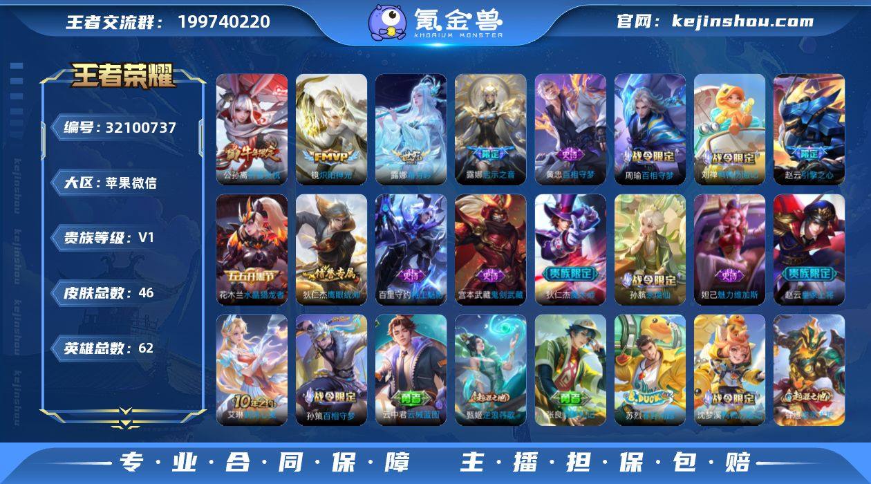 低场次,1.5w战力数字标小国露娜,0场次金标1.1w战镜,小魔方已开,巅峰历史最高2284,小质量皮肤 【传说皮肤】:露娜霜月吟,露娜启示之音,公孙离祈雪灵祝,镜炽阳神光 【限定皮肤】:狄仁杰阴阳师,赵云皇家上将,赵云引擎之心,狄仁杰魔术师,项羽海滩派对,露娜启示之音,公孙离祈雪灵祝 【年限皮肤】:公孙离祈雪灵祝 【赛季限定】:太乙真人谧流熔炉,钟馗虚灵犬护,甄姬逆浪荇歌 【战令限定】:孙膑茶境仙,马超访茗客,刘禅鸭鸭历险记,沈梦溪鸭鸭历险记,周瑜百相守梦,孙策百相守梦 【史诗皮肤】:黄忠百相守梦,周瑜百相守梦,刘禅鸭鸭历险记,孙膑茶境仙,狄仁杰鹰眼统帅,百里守约特工魅影,花木兰水晶猎龙者,赵云引擎之心,妲己魅力维加斯,宫本武藏鬼剑武藏,狄仁杰魔术师,赵云皇家上将 【其他皮肤】:艾琳鹤鸣心笺,孙策百相守梦,云中君云械蓝图,甄姬逆浪荇歌,张良灵野札记,苏烈春野闲踪,沈梦溪鸭鸭历险记,钟馗虚灵犬护,戈娅玫蓝誓约,明世隐景韶洛都,马超访茗客,太乙真人谧流熔炉,亚连破局者,小乔丁香结,王昭君幻想奇妙夜,狄仁杰阴阳师,宫本武藏万象初新,亚瑟死亡骑士,赵云忍炎影,达摩大发明家,项羽海滩派对,暃碧珀绯影,云缨赤焰之缨,马超幸存者,公孙离花间舞,百里守约绝影神枪,太乙真人圆桌骑士,夏侯惇战争骑士,李白范海辛,曹操超能战警 【营地ID】:1633462274 【小国标】:小国标露娜