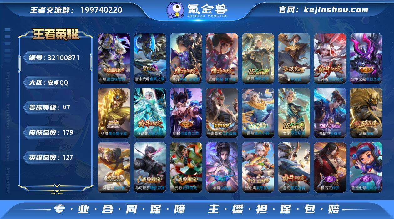 王者19525,不可二次,安卓Q-V7-最强王者段位-127英雄-179皮肤-1典藏皮肤-10传说-50史诗 【荣耀典藏】:铠银白咏叹调 【传说皮肤】:云缨神骥越千峰,马超神骥逐星野,后羿神树通天,曜李逍遥 ,公孙离祈雪灵祝,诸葛亮时雨天司,干将莫邪久胜战神,达摩黄金狮子座,貂蝉仲夏夜之梦,宫本武藏地狱之眼 【限定皮肤】:白起狰,狄仁杰阴阳师,虞姬凯尔特女王,廉颇寅虎御盾,赵云皇家上将,墨子神迹守卫,孙尚香蔷薇恋人,庄周高山流水,钟无艳超时空战士,孙膑妖精王,扁鹊炼金王,芈月白晶晶,芈月幻夜卜梦,吕布御风骁将,元歌云间偶戏,元歌无心,夏侯惇朔风刀,甄姬落雪兰心,马可波罗暗影游猎,狄仁杰魔术师,狄仁杰万华元夜,达摩星际陆战队,达摩沙漠行僧,项羽海滩派对,老夫子醍醐杖,老夫子航海奇遇记,程咬金演武夺筹,亚瑟潮玩骑士王,孙悟空至尊宝,孙悟空孙行者,牛魔御旌,李元芳银河之约,李元芳云中旅人,虞姬霸王别姬,钟馗驱傩正仪,雅典娜单词大作战,雅典娜黎明之约,太乙真人饕餮,鬼谷子原初探秘者,鬼谷子五谷丰年,诸葛亮时雨天司,黄忠火炮绅士,苏烈千军破阵,百里玄策原初追逐者,弈星混沌棋,公孙离祈雪灵祝,沈梦溪星空之诺,沈梦溪大漠名商,明世隐疑决卦,裴擒虎李小龙,裴擒虎擒涛扼浪,米莱狄胡桃异想国,云中君纤云弄巧,伽罗天狼溯光者,盾山御銮,上官婉儿梁祝,嫦娥拒霜思,曜李逍遥 ,蒙犽狂想玩偶喵,鲁班大师探海日志,桑启海盐诗旅,鬼谷子天穹祈灯,姬小满妄想食味,刘邦剑破天穹 【年限皮肤】:公孙离祈雪灵祝,诸葛亮时雨天司,吕布御风骁将,廉颇寅虎御盾 【赛季限定】:孙膑妖精王,扁鹊炼金王,虞姬凯尔特女王,白起狰,太乙真人饕餮,牛魔御旌,盾山御銮,夏侯惇朔风刀,弈星混沌棋,明世隐疑决卦,老夫子醍醐杖,鬼谷子原初探秘者,狄仁杰万华元夜,程咬金演武...