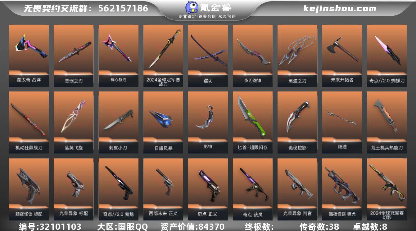 皮肤资产价值:84370 已用源晶点数:1625 悲悯之刃,剥皮小刀-异形猎人,匕首-超限闪存,诡秘蛇影 影钩-掠影2.0 战刀-2024全球冠军赛,镭切-创·纪元,夜刃诡镰-黯夜怪谈,机动狂飙战刀,光荣异象 歧途,荒土机兵热能刀,日耀风暴 蒙太奇 战斧,未来开拓者-西部未来 蝴蝶刀-奇点//2.0 落英飞旋-千灵华绽 碎心裂刃,黑波之刃-塑水宗 獠犬-黯夜怪谈,幻影-2024全球冠军赛,幻影-黯夜怪谈,幻影-奇点,狂徒-奇点//2.0,RGX 11z pro 狂徒,光荣异象 狂徒,狂徒-混沌序曲,狂徒-塑水宗,狂徒-全息波普//2.0,戍卫-侦察力量,掠影2.0 幻影,狂徒-堕天遗武,狂徒-紫阙金琅,狂徒-离子武器2.0,超集系统 狂徒,风暴之子 戍卫,幻影-超限闪存,幻影-末日之翼,幻影-纳米打击,幻影-日耀风暴,幻影-神圣领域,幻影-甜心猎手,幻影-悠闲猫生,狂徒-阿特拉斯指挥部,狂徒-诡秘蛇影,狂徒-荒土机兵,狂徒-幻心猎手,獠犬-幻语魔咒,獠犬-模拟赫兹,獠犬-神圣领域,獠犬-悠闲猫生,獠犬-诛心猎手,蒙太奇 幻影,戍卫-浮光跃金,戍卫-逆冲蛮牛,戍卫-太空穿梭,戍卫-甜蜜战术,戍卫-甜心猎手,戍卫-月球哨兵,戍卫-折光棱晶 骇灵-奇点,掠影2.0 骇灵,蜂刺-超限闪存,蜂刺-甜心猎手,骇灵-阿特拉斯指挥部,骇灵-浮光跃金,骇灵-荒土机兵,骇灵-星云暗涌,蒙太奇 骇灵,蜂刺-折光棱晶 掠影2.0 奥丁,奥丁-末日之翼,奥丁-纳米打击,奥丁-日耀风暴,奥丁-诛心猎手,蒙太奇 战神,战神-浮光跃金,战神-神圣领域,战神-太空穿梭 飞将-黯夜怪谈,冥驹-RGX 11z Pro//2.0,光荣异象 冥驹,超集系统 飞将,风暴之子 冥驹,飞将-幻语魔咒,飞将-末日之翼,飞将-悠闲猫生,冥驹-荒土机兵,冥驹-模拟赫兹,冥驹-甜蜜战术,冥驹-诛心猎手,莽侠-阿特拉斯指挥部,莽侠-超限闪存,莽侠-诡秘蛇影,莽侠-甜心猎手,莽侠-月球哨兵 标配-黯夜怪谈,光荣异象 标配,鬼魅-奇点//2.0,西部未来 正义,正义-奇点,掠影2.0 鬼魅,标配-浮光跃金,标配-荒土机兵,标配-折光棱晶,超集系统 标配,短炮-末日之翼,短炮-甜心猎手,短炮-悠闲猫生,风暴之子 正义,鬼魅-诡秘蛇影,鬼魅-幻心猎手,鬼魅-模拟赫兹,鬼魅-甜蜜战术,狂怒-幻语魔咒,狂怒-逆冲蛮牛,狂怒-神圣领域,蒙太奇 狂怒,正义-超限闪存,正义-纳米打击,正义-日耀风暴,正义-太空穿梭,正义-月球哨兵,正义-诛心猎手 光荣异象 判官,风暴之子 雄鹿,判官-诡秘蛇影,判官-纳米打击,判官-太空穿梭,判官-甜蜜战术,雄鹿-幻语魔咒,雄鹿-模拟赫兹,雄鹿-逆冲蛮牛,雄鹿-月球哨兵 黯夜怪谈卡面,分崩离析卡面,无畏契约GO!第一卷:零卡面,无畏契约GO!第一卷:芮娜卡面,光荣异象卡面,红鳞松叶卡面,看镜头卡面,掠影2.0卡面,梦幻奶茶卡面,奇点2.0卡面,2024全球冠军赛卡面,热舞环节卡面,势不可挡芮娜卡面,双城之战金克丝卡面,双城之战拥抱卡面,VCTCN首冠卡面,2023 VCT美洲联赛卡面,2023 VCT太平洋联赛卡面,无畏契约暮蝶卡面,我眼中的世界卡面,最高舞台卡面