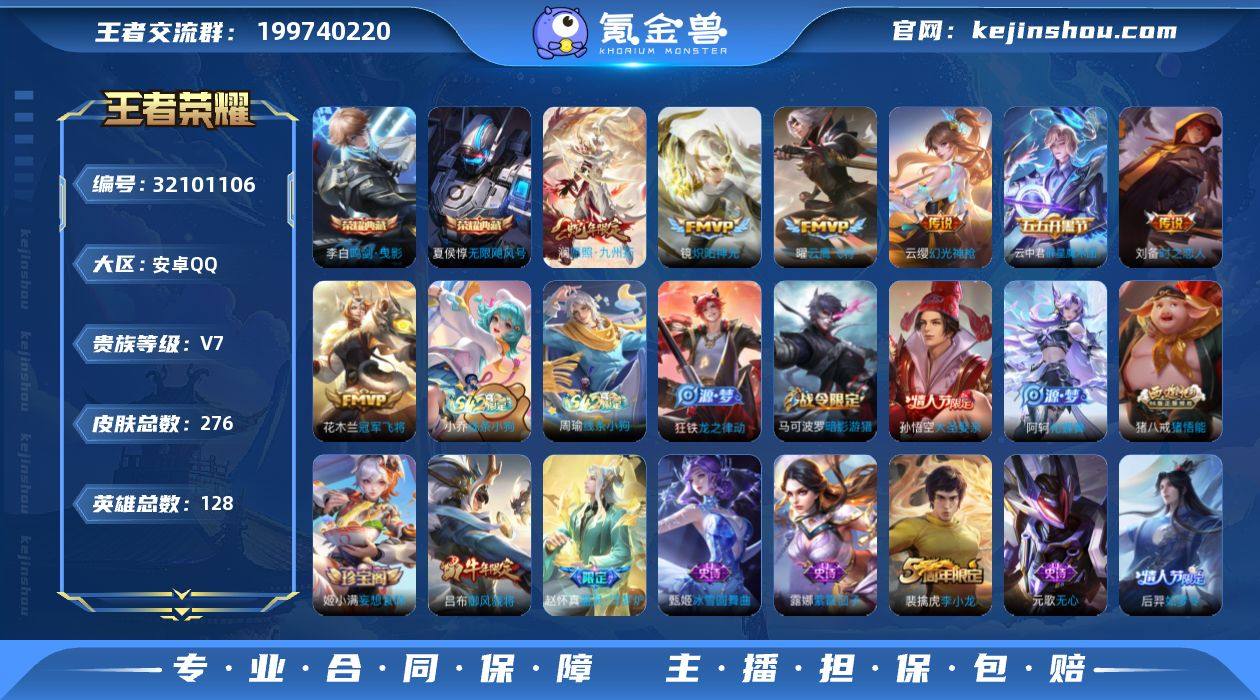2448179 安卓Q-V7-至尊星耀II段位-128英雄-276皮肤-2典藏皮肤-7传说-80史诗 【英雄全皮】:猪八戒全皮,敖隐全皮 【荣耀典藏】:夏侯惇无限飓风号,李白鸣剑曳影 【传说皮肤】:澜愿照九州拓,云缨幻光神枪,云中君群星魔术团,镜炽阳神光,曜云鹰飞将,刘备时之恋人,花木兰冠军飞将 【限定皮肤】:杨戬破阵退雄兵,狄仁杰阴阳师,赵云皇家上将,墨子神迹守卫,嬴政优雅恋人,孙尚香蔷薇恋人,鲁班七号狮舞东方,庄周高山流水,高渐离死亡摇滚,扁鹊奇幻香踪,白起夜都怪侠,芈月幻夜卜梦,吕布御风骁将,元歌无心,夏侯惇朔风刀,马可波罗暗影游猎,狄仁杰魔术师,狄仁杰万华元夜,达摩沙漠行僧,项羽海滩派对,老夫子醍醐杖,老夫子航海奇遇记,程咬金演武夺筹,兰陵王金庭之子,孙悟空大圣娶亲,牛魔御旌,后羿如梦令,李元芳银河之约,李元芳云中旅人,钟馗神迹守卫,钟馗驱傩正仪,杨玉环遇见飞天,杨戬潮玩骑兵,雅典娜黎明之约,蔡文姬繁星吟游,鬼谷子原初探秘者,鬼谷子五谷丰年,黄忠火炮绅士,苏烈千军破阵,百里玄策原初追逐者,弈星混沌棋,梦奇顽趣,沈梦溪星空之诺,沈梦溪大漠名商,明世隐疑决卦,明世隐吟游魔法,裴擒虎李小龙,裴擒虎擒涛扼浪,云中君纤云弄巧,伽罗天狼溯光者,盾山御銮,猪八戒西部大镖客,猪八戒猪悟能,上官婉儿梁祝,嫦娥拒霜思,西施玲珑珍味,鲁班大师探海日志,桑启海盐诗旅,戈娅驭风魔法,阿古朵江河有灵,张良古海寻踪,蒙犽百解令,蒙恬荣光圣徽,鬼谷子天穹祈灯,姬小满妄想食味,百里玄策超元猎域,沈梦溪龙舞盛年,刘邦剑破天穹,程咬金群星魔术团,云中君群星魔术团,刘备异域游侠 【年限皮肤】:吕布御风骁将,澜愿照九州拓 【赛季限定】:牛魔御旌,盾山御銮,夏侯惇朔风刀,弈星混沌棋,明世隐疑决卦,老夫子醍醐杖,鬼谷子原初探秘者,狄仁杰万华元夜,程...
