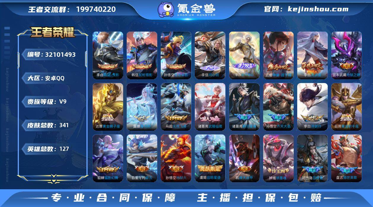 【王者荣耀】珍品无双0 典藏3 无双2 珍品传说0 传说18 史诗96 英雄127 皮肤341 贵族9级 荣耀典藏:全息碎影|鸣剑·曳影|弑枪猎影__无双皮肤:碎月剑心|问心剑__传说皮肤:无双飞将|绛天战甲|启明星使|地狱之眼|地狱火|黄金狮子座|狄仁杰-超时空战士|黄金射手座|猫影幻舞|鹤羽星尊|孙尚香-末日机甲|齐天大圣|凤求凰|诗剑行|霜月吟|碎云|武陵仙君|神骥·越千峰__稀有限定:至尊宝|青龙志|玄武志|朱雀志|飞衡|蔷薇恋人|孙行者|傲雪梅枪|李小龙|梁祝|狮舞东方|拒霜思|暗影游猎|大漠名商|地狱燃心|高山流水|古海寻踪|海滩派对|海盐诗旅|航海奇遇记|后羿-如梦令|皇家上将|混沌棋|剑破天穹|金庭之子|镜-真我赫兹|狂想玩偶喵|蓝屏警告|黎明之约|魔术师|女武神|千军破阵|擒涛扼浪|青焰无极|穷奇|驱傩正仪|荣光圣徽|沙漠行僧|朔风刀|探海日志|醍醐杖|天穹祈灯|万华元夜|王者之锤|无心|五谷丰年|纤云弄巧|星界游侠|星空之诺|演武夺筹|疑决卦|阴阳师|银河之约|遇见飞天|御旌|御銮|御狮|原初追逐者|云间偶戏|逐梦之影|暗夜贵公子|暗夜猫娘|暗隐猎兽者|暗渊魔法|白龙吟|白蛇|缤纷独角兽|冰冠公主|冰雪圆舞曲|乘风破浪|德古拉伯爵|地狱岩魂|电玩·爆裂旋风|电玩小子|功夫厨神|鬼剑武藏|黄金分割率|节奏热浪|金属风暴|龙骑士|吕布-末日机甲|魅力维加斯|梦奇-顽趣|女仆咖啡|偶像歌手|热力回旋|绅士熊喵|圣诞狂欢|圣诞恋歌|水果甜心|水晶猎龙者|孙策-猫狗日记|滕王阁序|天才门将|天秀·启明|晚萤|赵云-未来纪元|星夜王子|鹰眼统帅|幽灵船长|钟无艳-超时空战士|逐浪之夏|天穹之誓|修罗|曙光守护者|千年之狐|孙尚香-时之恋人|无限星赏官|舞动绿茵|特工魅影|心灵骇客|星界战将|谧流熔炉|御霄|原初探秘者|云中旅人|玲珑珍味|单词大作战|朔望之晖|暖冬·兔眠|灵卜魔法|苍威无极|墨子-神迹守卫|落雪兰心|死神来了|龙之律动|布丁狗之约|虚灵犬护|黄忠...