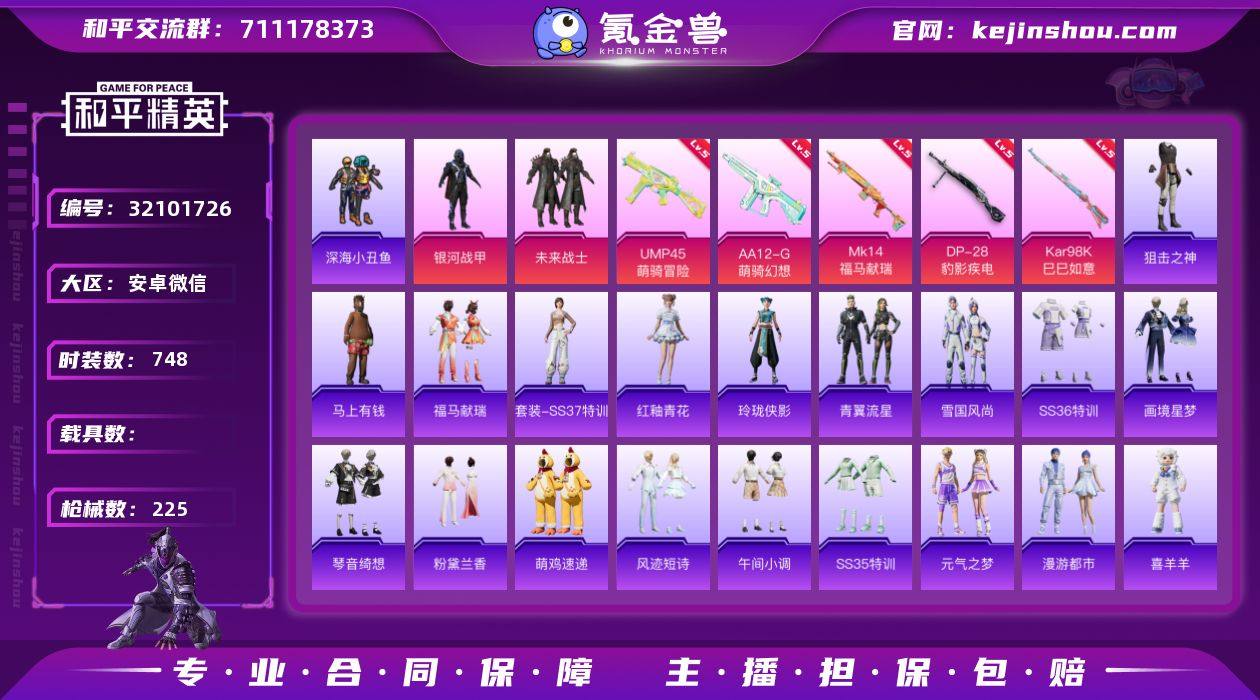 实名:可二次实名 是否支持人脸包赔:支持 粉装数量:2 特效枪数量:5 时装数:748 枪械数:225 深海小丑鱼 未来战士,银河战甲 五级AA12-G-萌骑幻想,五级UMP45-萌骑冒险,五级MK14-福马献瑞,五级DP-28-豹影疾电,五级Kar98K-巳巳如意 狙击之神,马上有钱,福马献瑞,红釉青花,SS37特训,雨过天青,玲珑侠影,青翼流星,雪国风尚,画境星梦,琴音绮想,SS36特训,炫彩糖果,粉黛兰香,萌鸡速递,风迹短诗,SS35特训,午间小调,元气之梦,漫游都市,喜羊羊,薄荷星砂,云魄琉璃,狂鲨锋刃,凌霄紫焰,擎苍青焰,SS34特训套装,游乐,朱霞炽焰,冰川格斗者,冰川特警,冰冻风暴,缤纷果语,北国孤狼,滨海厨神,滨海假日,白糯汤圆,白色伏地魔,白熊同盟,长空猛禽,潮流炫酷,春日漫步,创世·追猎,顶瓜瓜,蝶变,大橘大利,呆萌铁蟹,都市魅力,飞驰魅影,粉红小猪,疯狂小兔子,粉恋花,福星高照,飞行日记,格斗先锋,龟仙人,光之冒险,海岛探路者,虎虎生威吉莉,湖蓝色名流,海龙战士,幻世保卫者,黑色伏地魔,黄色伏地魔,黄色名流,黄色运动,红色运动,幻世战舞者,幻影武者,极地朋克,军刀雅典娜,酒红色名流,橘黑制服,娇憨猪猪,竞技达人朋克,竞技名士,竞技勇士朋克,吉莉礼服,极速红龙,极速竞梦,街头潮人,街头风暴,军械专家,酷潮明星,科技之星,空投萌叽,蓝冰羽,蓝彩潮人,蓝调潮人,龙的传人,猎鹰,黎明保卫者,蓝色运动,恋语绒绒,冷焰舞者,漫步者,猛禽,萌黄之夏,魅力单车,麻辣教官,萌趣咩咩,萌趣颜团子,蜜桃派对,霓虹极客,霓虹街区,柠萌假日,牛气冲天,牛气满满,破蛋小黄鸡,破晓战魂,轻风白浪,绮丽涂鸦,青年教官,青涩时光,清新柠檬,千禧之恋,瑞龙福将,软萌银虎,人气偶像,热血青春,热血骑手,生化防暴队,深海小丑鱼,深蓝色名流,森林游猎者,沙漠兵团,沙漠毒蛇,神秘领域,SS10特训,SS12特训,SS13特训,SS14特训,SS15特训,SS16特训,SS17特训,SS18特训,SS19特训,SS20特训,SS21特训,SS22特训,SS27特训,SS28特训,SS29特训,SS31特训套装,SS32特训套装,SS33特训套装,SS7特训,SS8特训,SS9特训,巳巳如意,探宝勇士,甜蜜告白,甜蜜熊情侣,特训学院,团圆交子,田园牧歌,特战装甲,完美偶像,王牌教练,迅捷之星,炫蓝之夏,小鸟芋圆,旭日情侣,夏日倾情,夏日音浪,雪兔飞飞,异彩先驱,跃动心情,耀粉歌者,音速流光,玉兔迎春,鹰眼刺客,鱼渊荷华,耀眼新星,燕燕于飞,异域银装,战地督导,智谋强哥,紫幽梦,灼焰舞者,治愈之星 炫彩糖果飞行器,庄周梦蝶飞行器,极意拳锋降落伞,炫彩糖果降落伞,异瞳寒姬降落伞,恐龙拽拽降落伞,闲梦青缨降落伞,香水柠檬降落伞,旋转彩虹降落伞 卖家说:急出,可砍价