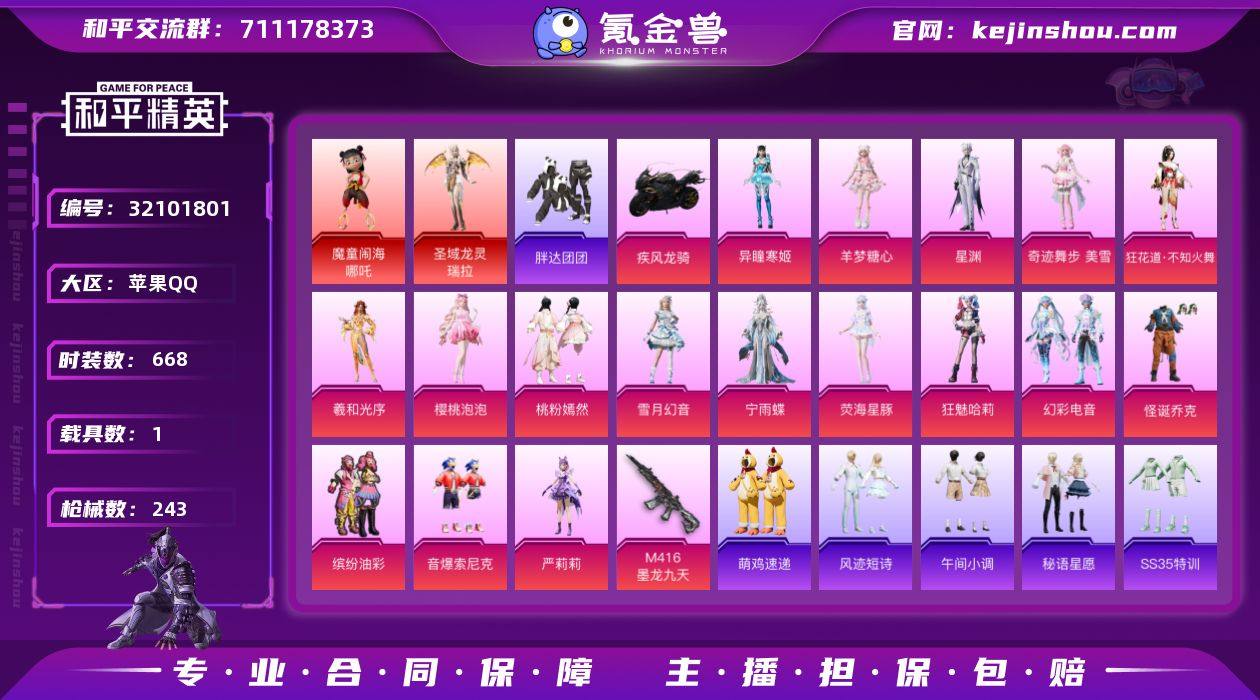 kk2468075-KK2343 苹果手Q-11王牌印记-2红装-17粉装-12特效枪-1载具-88478热力值-193套装-243枪皮-6卓越印记-1传奇印记-Mark.06,暗影哥特-地铁天赋36点 【2红装】圣域龙灵-瑞拉/3级,魔童闹海-哪吒/1级 【17粉装】套装-怪诞乔克,套装-缤纷油彩,角色-奇迹舞步 美雪,角色-异瞳寒姬,套装-雪月幻音,角色-樱桃泡泡,套装-桃粉嫣然,角色-严莉莉,角色-狂魅哈莉,套装-音爆索尼克,套装-幻彩电音,角色-羊梦糖心,角色-宁雨蝶,角色-羲和光序,角色-狂花道·不知火舞,角色-荧海星豚,角色-星渊 【12特效枪】Kar98K-圣域龙灵/3级,M416-墨龙九天/3级,Mk14-盛世惊鸿/3级,SPAS-12-音爆索尼克/7级,M762-鬼刀/4级,平底锅-喜羊羊与灰太狼/3级,AMR-智耀战神/5级,MK12-雪月幻音/4级,Vector-绯穹魔姬/4级,DP-28-豹影疾电/5级,M416-电玩时刻/5级,Kar98K-巳巳如意/5级 【6稀有紫装】Mark.06,暗影哥特,浪漫天命,胖达团团,小丑鱼,龟仙人 【1稀有载具】疾风龙骑 【193稀有时装】怪诞乔克,缤纷油彩,瑞拉/3级,哪吒/1级,桃粉嫣然,幻彩电音,奇迹舞步 美雪,星渊,宁雨蝶,羊梦糖心,异瞳寒姬,雪月幻音,狂魅哈莉,荧海星豚,SS35特训,午间小调,SS31特训,SS33特训,SS32特训,白辉玉蕊,SS36特训,彩虹兔,蓝冰羽,琴音绮想,乐音,灵公主,敖闰,雪绒豹,恋语绒绒,画境星梦,星影赞美诗,萌萌史莱姆,SS34特训,朱霞炽焰,紫幽梦,狂鲨锋刃,大橘大利,绛羽幽主,喜羊羊,胖达团团,浪漫天命,龟仙人,Mark.06,游乐,暗影哥特,懒羊羊,小丑鱼,美羊羊,凌霄紫焰,擎苍青焰,炫彩糖果,雪夜云雾,晨曦轻云,萌鸡速递,小鸟芋圆,元气之梦,书海巡游,风迹短诗,混沌火种,薄荷星砂,秘语星愿,粉恋花,樱梦幻音,云朵鹅,风舞幻音,冰晶湖光,顶瓜瓜,新风雅兰,Z.I.B特工,雪国风尚,琉璃花蕾,严莉莉,狂花道·不知火舞,羲和光序,樱桃泡泡,音爆