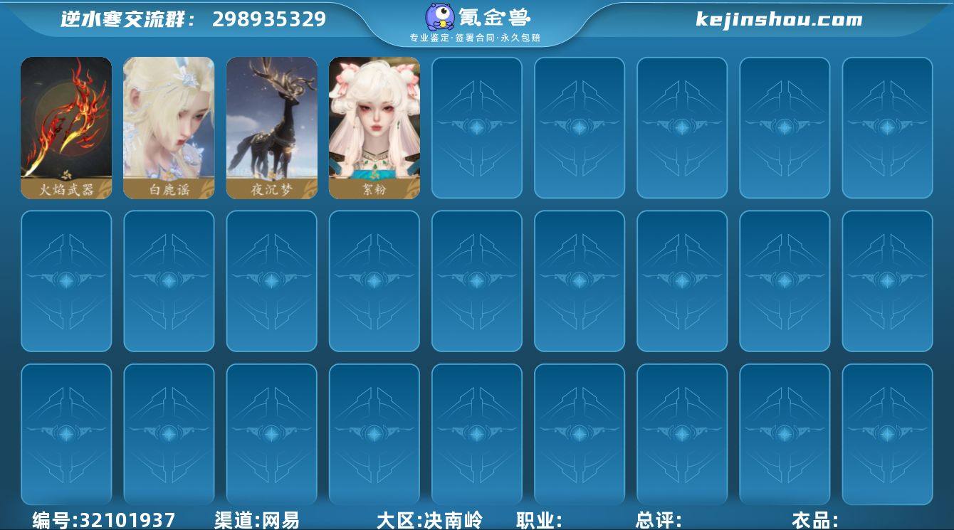 【区服】 沧海月明 【战力值】 73.59 【职业】 鸿音 【馆藏】 2级 【衣品值】 126035 【国色值】 22960 【已用天赏石】 6 【充值称号】 凭栏听雨 【累计充值】 4642元 【灵韵内功】 销干戈 【天赏外观】 絮粉, 白鹿谣, 火焰武器 【天赏祥瑞】 夜沉梦 【祥瑞坐骑】 云螭·庆舞迎春, 云螭·封冰怀雪, 呆宝, 云螭·烹鲜炊黍, 龙衔瑞焰, 布丁, 金冠鼠鼠, 假面, 风行·江湖景, 幻琉晶, 风行·世间情, 狂霸天, 风行·万灯明, 沉木行马, 贺岁喜狮, 伯力, 咩郎, 墨流云·玄色, 墨流云·靛青, 奔虹赤, 彩虹小马, 木小马, 银砂素波, 犬威哮月·沧, 玉霄飞练, 花花团子, 桃桃雪, 隐云涧, 四方游士, 逍遥游, 空山闲 【商城外观】 窃月影姬, 云梦萤星, 云锦天香, 焕曜旋煌, 逸夏浮澜, 暗蔷魅影, 血宴风华, 鸿福昭运, 灵娲泽生, 天籁闻歌, 跃动心芒, 朔雪从风, 灵语星彩, 绒粉美梦, 川峦游墨, 鳞骨逢幽, 贪狼摄星, 开阳执戈, 衣香鬓影, 逆鳞濯月, 瀚渊龙炎, 金祷昼梦, 金粉绮梦, 烽火浮生, 赤狐魅语, 圣月澄空, 林泽清瑶, 广寒游仙, 灵鹿瑶羽, 云影乘月