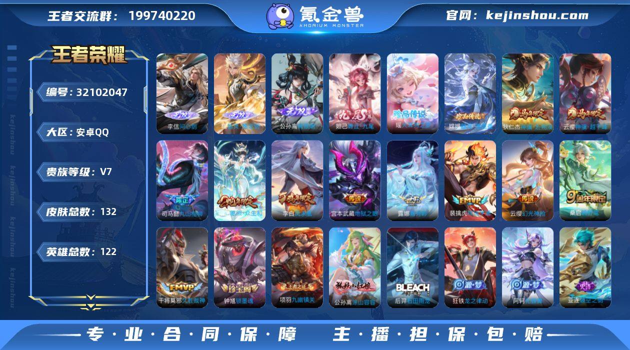 【王者荣耀】珍品无双0 典藏0 无双4 珍品传说2 传说13 史诗34 英雄122 皮肤132 贵族7级 无双皮肤:离恨烟|器灵·螭龙剑|青丘·九尾|问心剑__珍品传说:器灵·落星盏|大耳狗之梦__传说皮肤:鸣野蒿|地狱之眼|久胜战神|孙尚香-末日机甲|凤求凰|霜月吟|幻光神枪|祥瑞亨通|愿照·众生和|九山相柳|花木兰-异界灵契|神骥·赴朔漠|神骥·越千峰__稀有限定:古海寻踪|海滩派对|皇家上将|剑破天穹|黎明之约|炼金王|魔术师|荣光圣徽|饕餮|天穹祈灯|夜都魔契|阴阳师|游园惊梦|御狮|暗隐猎兽者|暗渊魔法|德古拉伯爵|鬼剑武藏|节奏热浪|吕布-末日机甲|魅力维加斯|偶像歌手|圣诞恋歌|水果甜心|星夜王子|鹰眼统帅|幽灵船长|逐浪之夏|陌上桑|噬灭天穹|破空之剑|天穹之誓|千年之狐|特工魅影|星界战将|谧流熔炉|化蝶舞|狰|烛龙|重明|云中旅人|孙悟空-神迹守卫|灵卜魔法|龙之律动|布丁狗之约|石田雨龙|逆浪荇歌|黄忠-百相守梦|涂山容容|荣光之誓|九幽镇关|小乔-线条小狗|周瑜-线条小狗|锁墨魂__优质皮肤:创世神祝|埃及法老|露花倒影|激情绿茵|海之征途|天启骑士|碧珀绯影|锦衣卫|海军大将|踏雪寻梅|战争骑士|生化警戒|绝影神枪|福禄兄弟|龙域领主|爱与和平|魇语军师|花见巫女|东海龙王|霓裳曲|修竹墨客|万圣前夜|次元突破|丁香结|功夫老勺|幻想奇妙夜|阿尔法小队|死亡骑士|黄金武士|少女阿狸|宫本武藏-未来纪元|忍·炎影|爱心护理|教廷特使|零食大作战|拳王|白色死神|白执事|西施-雪境奇遇|景韶洛都|雾都夜雨|铁骨偃魂|纽约教父|龙腾万里|乱世虎臣|敏锐之力|汉昭烈帝|乓乓大师|五福同心|蒙犽-归虚梦演|花好人间|万象初新|苍林狼骑|玫蓝誓约|踏浪烽翎|径山谋武|极光幻客|赤刃凌霄__贵族等级:贵族7级__王者段位:荣耀王者精品高战力无双皮肤号 1.5w小国服第一司马懿+万战小国服妲己【离恨烟,问心剑,青丘·九尾,器灵·螭龙剑】【器灵·落星盏,大耳狗...