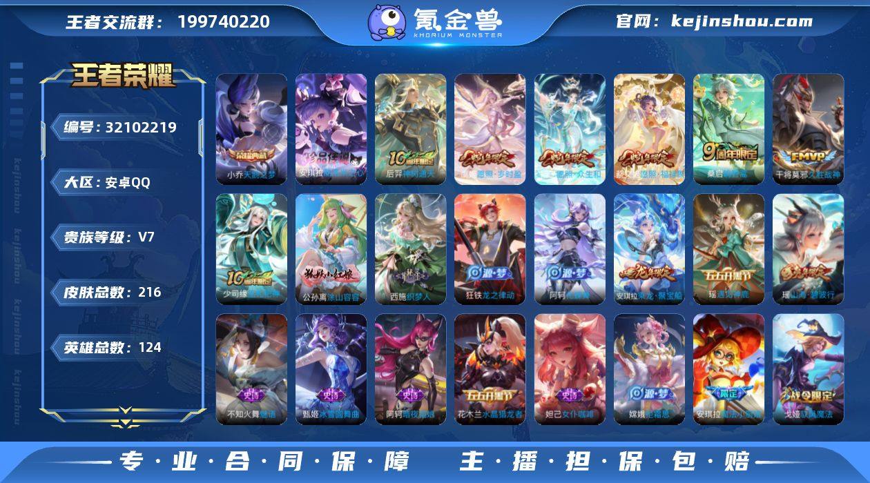 【王者荣耀】珍品无双0 典藏1 无双0 珍品传说1 传说6 史诗53 英雄125 皮肤216 贵族5级 荣耀典藏:天鹅之梦__珍品传说:酷洛米之心__传说皮肤:鸣野蒿|久胜战神|愿照·岁时盈|愿照·众生和|愿照·福禄聚|神树通天__稀有限定:虞姬-霸王别姬|蔷薇恋人|山海·碧波行|拒霜思|大漠名商|高山流水|古海寻踪|海滩派对|海盐诗旅|皇家上将|混沌棋|剑破天穹|江河有灵|金庭之子|魔法小厨娘|魔术师|女武神|千军破阵|驱傩正仪|燃音魔法|沙漠行僧|朔风刀|探海日志|天穹祈灯|万华元夜|纤云弄巧|演武夺筹|疑决卦|阴阳师|驭风魔法|遇见飞天|御銮|暗夜贵公子|暗夜猫娘|白蛇|缤纷独角兽|冰雪圆舞曲|苍穹之光|乘风破浪|乘龙·聚宝船|大乔-猫狗日记|德古拉伯爵|地狱岩魂|伽罗-琥珀纪元|鬼剑武藏|唤灵魅影|金属风暴|魅力维加斯|魅语|女仆咖啡|偶像歌手|圣诞狂欢|圣诞恋歌|诗语江南|水果甜心|水晶猎龙者|孙策-猫狗日记|摇滚巨星|鹰眼统帅|遇见神鹿|逐浪之夏|噬灭天穹|敬我三分|蔡文姬-夏日便利店|虞姬-夏日便利店|天穹之誓|千年之狐|舞动绿茵|特工魅影|心灵骇客|谧流熔炉|化蝶舞|原初探秘者|玲珑珍味|暖冬·兔眠|灵卜魔法|仙境爱丽丝|龙之律动|布丁狗之约|虚灵犬护|织梦人|涂山容容|巫礼祀神|鹤鸣心笺__优质皮肤:尼罗河女神|年年有余|埃及法老|孤猎|午夜歌剧院|露花倒影|未来旅行|碧珀绯影|森|英喵野望|海军大将|启蛰|战争骑士|伊势巫女|生化警戒|威尼斯狂欢|第七人偶|潮流仙人|芝加哥教父|街头旋风|绝影神枪|地府判官|荷鲁斯之眼|幸存者|赤焰之缨|前尘|特种部队|精灵王|剑舞者|范海辛|花间舞|花见巫女|棒球奇才|东海龙王|蔷薇王座|灼热之刃|精准探案法|帝国元帅|战争女神|霓裳曲|异域舞娘|精灵公主|修竹墨客|万圣前夜|异域游侠|功夫炙烤|幻夜行动|潮玩探月行|瓷语鉴心|秘密基地|次元突破|鲨炮海盗猫|野性能量|丁香结|虹云星官|守护之力|坚韧之力|幻...