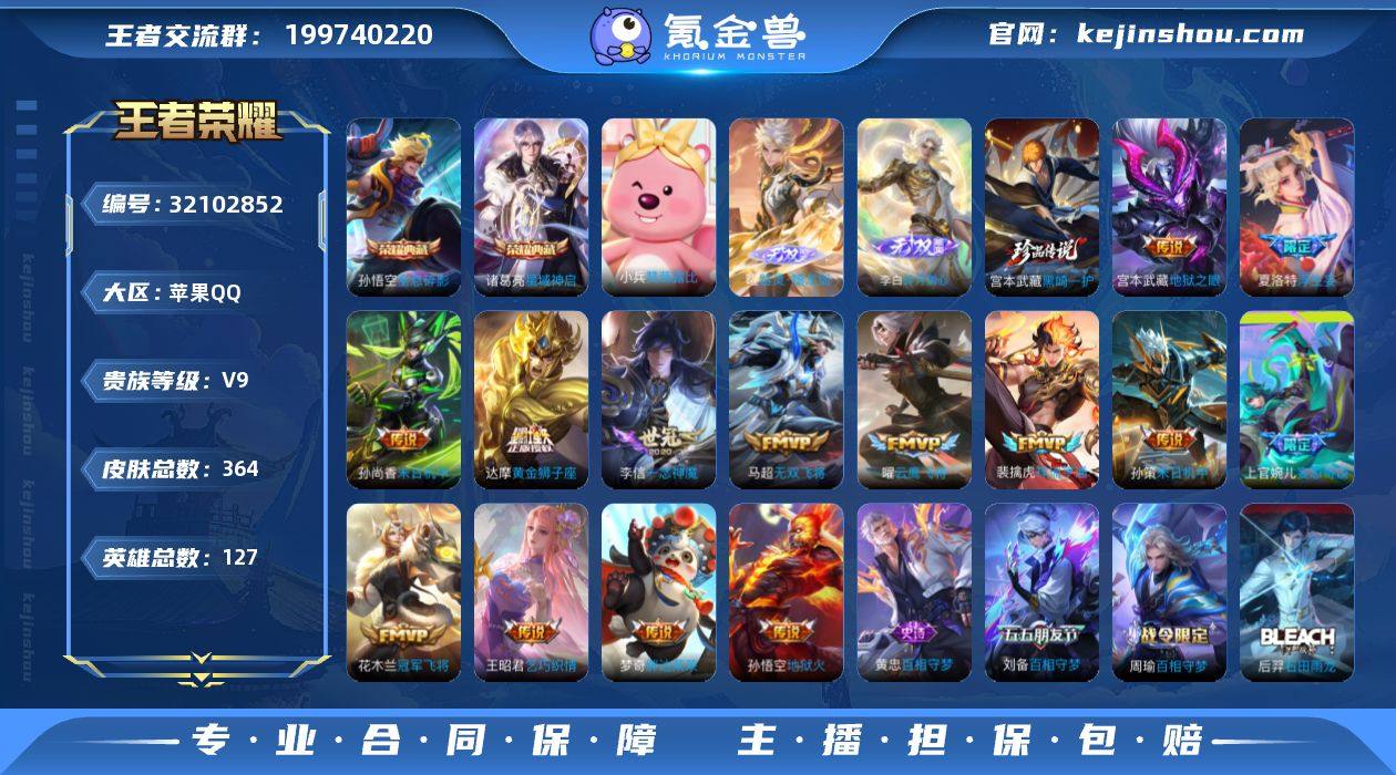 4w小国老夫子·对抗路50段·全皮老夫子·全息碎影·星域神启·器灵螭龙剑·碎月剑心·黑崎一护·神骥逐星野·白虎志·愿照山河定·愿照九州拓·愿照岁时盈·浮生妄·绯月行·深海之息·怒海麟威·诗剑行·枫霜尽·死亡执政官·纵目迁山·可二次】w18194-苹果Q-127英雄-364皮肤-16王者印记-240铭文-贵族积分13w【贵族9】【2典藏·2无双·1珍品·2星传说·32传说·52按键】【因赛季更新游戏段付以上号为准!】 【英雄全皮】:老夫子全皮,孙权全皮,橘右京全皮,苏烈全皮,狂铁全皮,夏洛特全皮,空空儿全皮,影全皮,姬小满全皮 【荣耀典藏】:孙悟空全息碎影,诸葛亮星域神启 【无双皮肤】:曜器灵螭龙剑,李白碎月剑心 【珍品传说】:宫本武藏黑崎一护 【小国标】:小国标老夫子 【金标】:金标元歌 【传说皮肤】:马超神骥逐星野,杨戬纵目迁山,后羿神树通天,曹操万灵伏威,大司命死亡执政官,司空震愿照山河定,澜愿照九州拓,虞姬愿照岁时盈,裴擒虎祥瑞亨通,桑启鸣野蒿,上官婉儿妄想奇谈,夏洛特浮生妄,吕布怒海麟威,李白诗剑行,不知火舞绯月行,橘右京枫霜尽,马可波罗深海之息,后羿无尽星芒,马超无双飞将,孙策末日机甲,王昭君乞巧织情,虞姬启明星使,曜云鹰飞将,李信一念神魔,达摩黄金狮子座,百里玄策白虎志,花木兰冠军飞将,梦奇胖达荣荣,李白凤求凰,孙尚香末日机甲,宫本武藏地狱之眼,孙悟空地狱火 【限定皮肤】:白起狰,蒙犽顽岩魄,蔡文姬夏日便利店,虞姬夏日便利店,姜子牙天穹之誓,狄仁杰阴阳师,赵云皇家上将,墨子神迹守卫,嬴政优雅恋人,嬴政白昼王子,鲁班七号狮舞东方,庄周高山流水,高渐离死亡摇滚,白起夜都怪侠,芈月重明,吕布猎兽之王,周瑜赤莲之焰,元歌云间偶戏,元歌无心,夏侯惇朔风刀,曹操烛龙,典韦穷奇,典韦蓝屏警告,马可波罗深海之息,狄仁杰魔术师,狄仁杰万华元夜,达摩沙漠行...