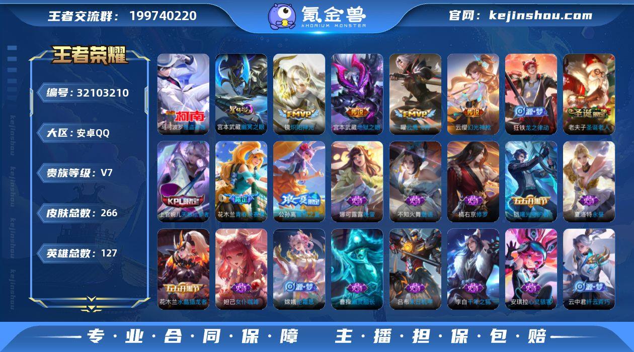 3w小国西施·金标1.5w老虎·金标1.3w娜可·金标万战火舞·金标万战花木兰·金标万战镜·金标万战赵云·金标万战杨玉环·金标万战牛魔·金标准万战张飞·打野68段·中路47段·问心剑·基德·敬我三分天幕·寅虎赤拳·神骥越千峰·时雨天司·瑞麟志·可二次】w18218-安卓Q-127英雄-266皮肤-25王者印记-300铭文-贵族积分3w【贵族7】【·1无双·1珍品·1星传说·8传说·2天幕·4按键·288幸运值】【因赛季更新游戏段付以上号为准!】 【英雄全皮】:孙权全皮,猪八戒全皮,敖隐全皮,影全皮 【无双皮肤】:李信问心剑 【珍品传说】:马可波罗怪盗基德 【星元皮肤】:宫本武藏幽冥之眼 【天幕】:敬我三分天幕,共赏芳华天幕 【传说皮肤】:云缨神骥越千峰,云缨幻光神枪,桑启鸣野蒿,裴擒虎寅虎赤拳,诸葛亮时雨天司,镜炽阳神光,曜云鹰飞将,宫本武藏地狱之眼 【限定皮肤】:白起狰,姜子牙天穹之誓,狄仁杰阴阳师,虞姬凯尔特女王,赵云皇家上将,赵云百木心枪,嬴政优雅恋人,嬴政白昼王子,孙尚香蔷薇恋人,庄周高山流水,高渐离死亡摇滚,阿轲迷踪丽影,芈月重明,吕布猎兽之王,元歌云间偶戏,元歌无心,夏侯惇朔风刀,甄姬游园惊梦,曹操烛龙,典韦穷奇,马可波罗暗影游猎,狄仁杰魔术师,狄仁杰万华元夜,达摩沙漠行僧,项羽海滩派对,老夫子圣诞老人,老夫子醍醐杖,程咬金演武夺筹,刘邦夺宝奇兵,兰陵王金庭之子,花木兰青春决赛季,花木兰瑞麟志,亚瑟潮玩骑士王,牛魔御旌,李元芳云中旅人,虞姬霸王别姬,钟馗驱傩正仪,杨玉环遇见飞天,雅典娜单词大作战,雅典娜黎明之约,蔡文姬繁星吟游,太乙真人饕餮,太乙真人华丽摇滚,鬼谷子原初探秘者,鬼谷子五谷丰年,诸葛亮时雨天司,苏烈千军破阵,百里玄策原初追逐者,弈星混沌棋,梦奇顽趣,公孙离蜜橘之夏,沈梦溪大漠名商,明世隐疑决卦,裴擒虎李小龙,裴擒虎寅虎赤拳,裴擒虎擒...