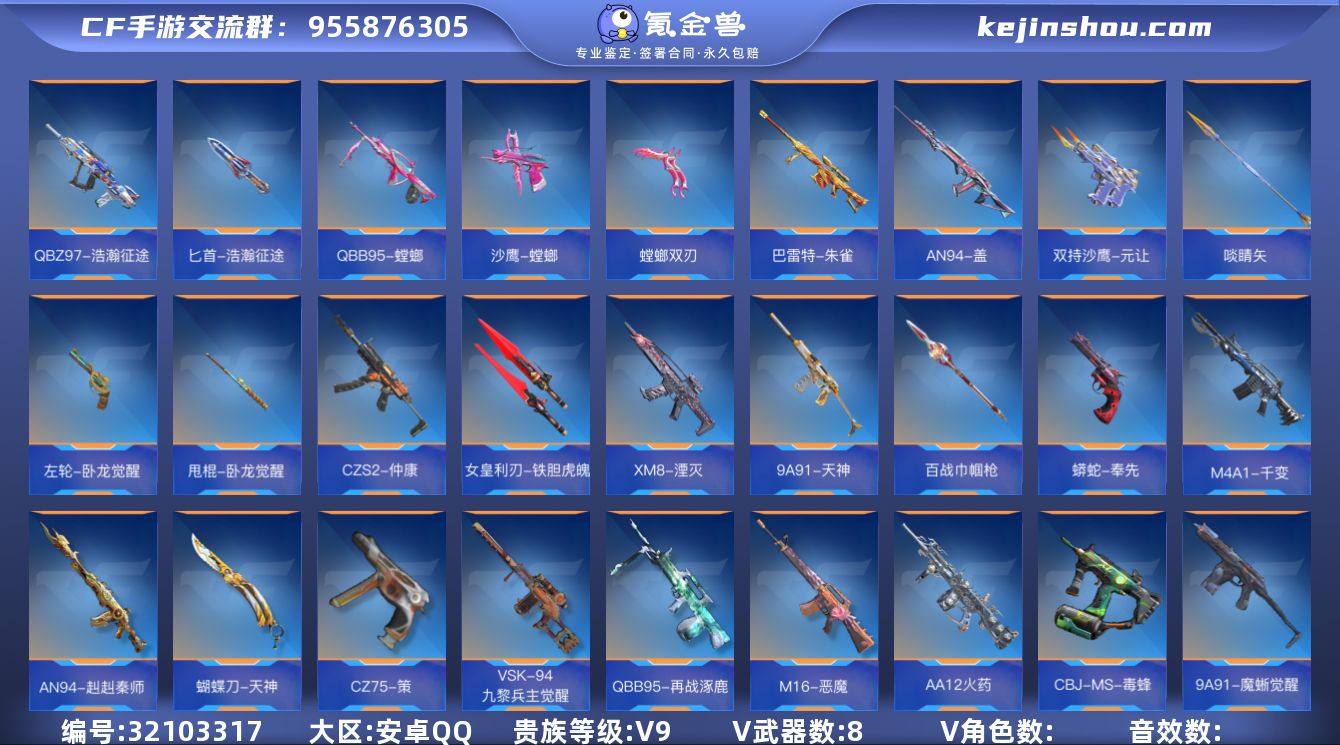 WLQZ513【V9 5至尊2同框 戮至尊 影至尊 心至尊 魄至尊 怒至尊 王啸-白金血钻 王心-冰皮 巴雷特-雷霆王者 王霆 王轮 波塞冬套 黑龙魂 cop357-A 王尊 王神 王狱-冰皮 3把王烈 王蝶 M12S-雷霆王者 盖 仁德 定军 炼狱套-怒魔 仲康套 孟获 m4游骑兵-寒霜 AW游骑兵-寒霜 幻神 】【等级】154【区服】手Q-安卓【金角色数】8【金武器数】373【金V角色】香香 英雄兰 幽灵刀锋-觉醒 雅典娜 樱 祝融夫人 宋雨琦 葵 潘多拉【金V武器】王者之心手雷 沙鹰-修罗 巴雷特-毁灭 巴雷特-极光 M4A1-雷神 M4A1-黑骑士 98K-黑骑士 地狱烈炎 沙鹰-无影 战斧-无影 龙啸 沙鹰-火麒麟 马来剑-毁灭 巴雷特-雷神 尼泊尔-火麒麟 AN94-超新星 M4A1-死神 沙鹰-天神 屠龙 王者之心闪光弹 王者之心 王者之魄 火麒麟手雷 火麒麟闪光弹 火麒麟烟雾弹 USP-神罚 AK12-天启 麒麟刺 黑武士闪光弹 王者之怒 M4A1-游骑兵 死神手雷 死神烟雾弹 死神闪光弹 王者之影手雷 M4A1-黑龙 王者之影闪光弹 王者之影烟雾弹 擎天觉醒 沙鹰-修罗 王者之影 王者之啸 王者之灵 尼泊尔-雷霆 沙鹰-游骑兵 王者之魂 CZ75-死神 丛林匕首-死神 巴雷特-定军 沙鹰-定军 M14EBR-拂影 M4A1-变色龙 火麒麟烟雾弹 屠龙 QBZ03-湮灭 激光短刃-黑骑士 双管猎枪-黑骑士 加特林-炼狱 王者之锋 王者之戮 王者之翼手雷 王者之翼手雷 血月 巴雷特-雷霆王者 黑龙刺 巴雷特-枪娘 尼泊尔-火麒麟 黑龙魂 燃烧弹-游骑兵 闪光弹-游骑兵 烟雾弹-游骑兵 USP-神罚 巴雷特-变色龙 气手枪-炼狱 丈八蛇矛 沙鹰-修罗 王者之烈 USP-神罚 QBZ03-枪娘 AK47-波塞冬 沙鹰-波塞冬 三叉戟-波塞冬 王者之心烟雾弹 斩神刀 左轮-黑武士觉醒 81式-光明之神 龙啸 黑骑士烟雾弹 USP-雷暴 CZS2-心动次元觉醒 王者之狱 唐刀-大唐荣耀 M200-幻神 墨刃-幻神 手斧-机械迷城 末日裁决觉醒