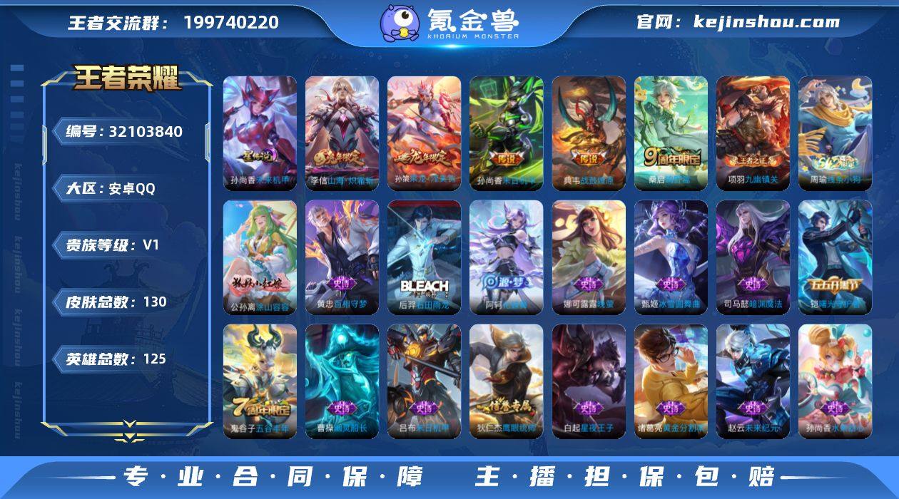安卓Q-V0-至尊星耀I段位-125英雄-130皮肤-5传说-27史诗【传说皮肤】:桑启鸣野蒿,典韦战鼓燎原,孙策乘龙淬吴钩,李信山海炽霜斩,孙尚香末日机甲【限定皮肤】:蒙犽顽岩魄,姜子牙天穹之誓,狄仁杰阴阳师,赵云皇家上将,高渐离玩趣恶龙,达摩沙漠行僧,项羽海滩派对,李元芳云中旅人,钟馗驱傩正仪,鬼谷子五谷丰年,百里玄策原初追逐者,沈梦溪大漠名商,裴擒虎擒涛扼浪,李信山海炽霜斩,鲁班大师探海日志,桑启海盐诗旅,艾琳女武神,张良古海寻踪,鬼谷子天穹祈灯,孙策乘龙淬吴钩,沈梦溪龙舞盛年,刘邦剑破天穹,程咬金群星魔术团,刘备异域游侠,周瑜熔金海岸【年限皮肤】:李信山海炽霜斩,孙策乘龙淬吴钩【赛季限定】:钟馗驱傩正仪,达摩沙漠行僧,沈梦溪大漠名商,李元芳云中旅人,桑启海盐诗旅,裴擒虎擒涛扼浪,鲁班大师探海日志,张良古海寻踪,鬼谷子天穹祈灯,刘邦剑破天穹,姜子牙天穹之誓,东皇太一噬灭天穹,太乙真人谧流熔炉,钟馗虚灵犬护,甄姬逆浪荇歌,亚瑟荣光之誓,百里玄策原初追逐者,牛魔星界战将,项羽九幽镇关【战令限定】:周瑜线条小狗【史诗皮肤】:周瑜线条小狗,项羽九幽镇关,公孙离涂山容容,黄忠百相守梦,后羿石田雨龙,阿轲化蝶舞,牛魔星界战将,蒙犽顽岩魄,鬼谷子五谷丰年,司马懿暗渊魔法,百里玄策原初追逐者,娜可露露晚萤,狄仁杰鹰眼统帅,孙策猫狗日记,白起星夜王子,李元芳逐浪之夏,铠曙光守护者,诸葛亮黄金分割率,吕布末日机甲,曹操幽灵船长,嬴政摇滚巨星,孙尚香水果甜心,宫本武藏鬼剑武藏,廉颇地狱岩魂,甄姬冰雪圆舞曲,貂蝉圣诞恋歌,赵云未来纪元,赵云皇家上将【其他皮肤】:鲁班七号班班快跑,桑启线条小狗,蚩奼极光幻客,艾琳鹤鸣心笺,亚瑟荣光之誓,鬼谷子克喵,莱西奥踏浪烽翎,甄姬逆浪荇歌,姬小满小满鸭,露娜命运加冕,阿古朵布...