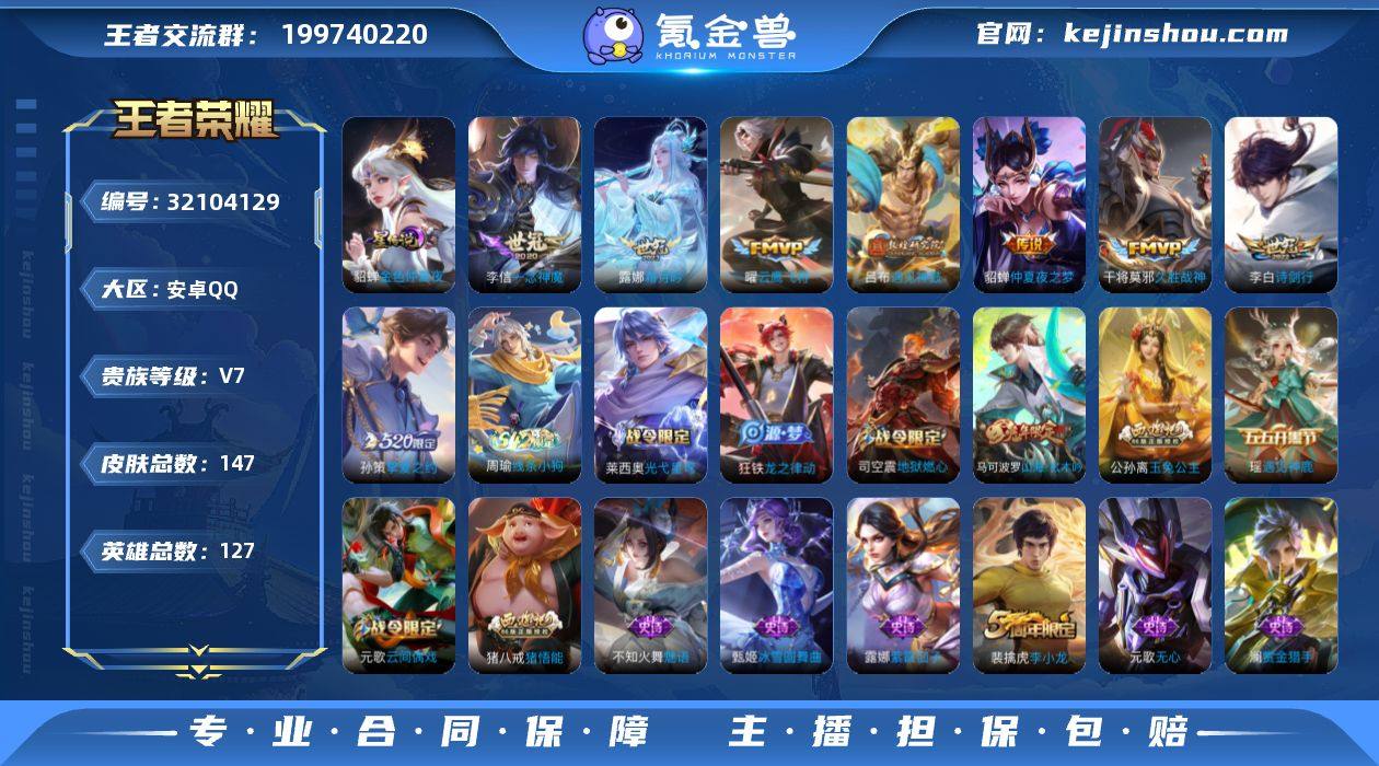 【WZ181121】安卓Q-V7-永恒钻石II段位-127英雄-147皮肤-9传说-42史诗【传说皮肤】:云缨神骥越千峰,露娜霜月吟,吕布遇见神鼓,李白诗剑行,孙策挚爱之约,曜云鹰飞将,李信一念神魔,干将莫邪久胜战神,貂蝉仲夏夜之梦【限定皮肤】:狄仁杰阴阳师,赵云皇家上将,高渐离玩趣恶龙,吕布遇见神鼓,元歌云间偶戏,元歌无心,马可波罗山海玄木吟,狄仁杰魔术师,狄仁杰万华元夜,达摩沙漠行僧,项羽海滩派对,老夫子醍醐杖,程咬金演武夺筹,兰陵王金庭之子,亚瑟潮玩骑士王,李元芳云中旅人,钟馗驱傩正仪,雅典娜单词大作战,鬼谷子原初探秘者,鬼谷子五谷丰年,弈星混沌棋,公孙离玉兔公主,沈梦溪大漠名商,明世隐疑决卦,裴擒虎李小龙,云中君纤云弄巧,孙策挚爱之约,猪八戒猪悟能,上官婉儿梁祝,嫦娥拒霜思,蒙犽狂想玩偶喵,桑启海盐诗旅,艾琳流音漫舞,司空震地狱燃心,阿古朵江河有灵,张良古海寻踪,蒙犽百解令,鬼谷子天穹祈灯,伽罗琥珀纪元【年限皮肤】:马可波罗山海玄木吟【赛季限定】:弈星混沌棋,明世隐疑决卦,老夫子醍醐杖,鬼谷子原初探秘者,狄仁杰万华元夜,程咬金演武夺筹,钟馗驱傩正仪,达摩沙漠行僧,兰陵王金庭之子,沈梦溪大漠名商,李元芳云中旅人,桑启海盐诗旅,张良古海寻踪,鬼谷子天穹祈灯,东皇太一噬灭天穹,甄姬逆浪荇歌【战令限定】:蒙犽狂想玩偶喵,雅典娜单词大作战,元歌云间偶戏,亚瑟潮玩骑士王,司空震地狱燃心,艾琳流音漫舞,莱西奥光弋星穹,明世隐往忆晖光,周瑜线条小狗【史诗皮肤】:盘古撼世英歌,周瑜线条小狗,莱西奥光弋星穹,狂铁龙之律动,弈星万物之道,伽罗琥珀纪元,蒙犽百解令,阿古朵江河有灵,司空震地狱燃心,马可波罗山海玄木吟,元歌无心,鬼谷子五谷丰年,澜赏金猎手,公孙离玉兔公主,嫦娥拒霜思,司马懿暗渊魔法,猪八戒猪悟能,元歌云间...