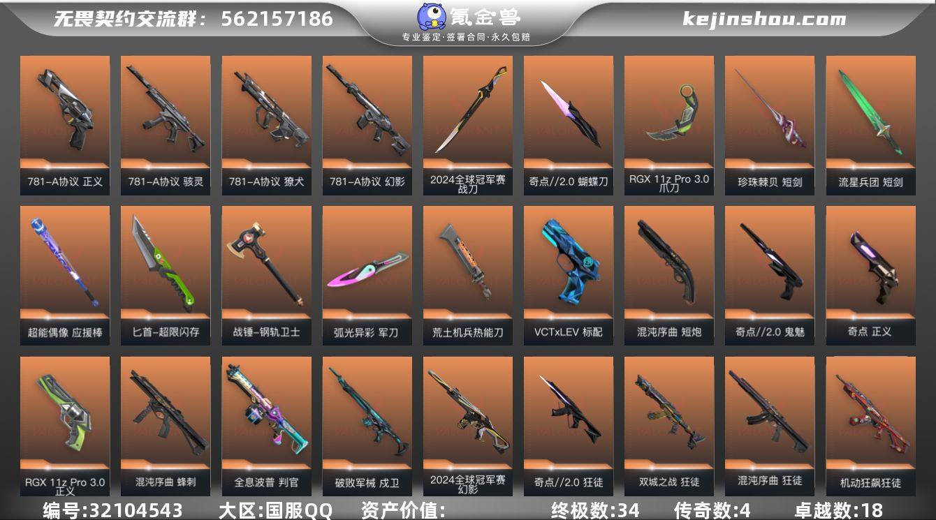 【WWD413】终极*34/传奇*4/卓越*18/皮肤*148/等级*250/段位:黄金/2024全球冠军赛套装/781-A协议套装/RGX 11z Pro//3.0套装/混沌序曲套装/奇点//2.0套装/耀鳞威龙套装/掠影套装/幻棱/炼狱/维斯/暮蝶/钛狐/壹决/铁臂/捷风/雷兹/幽影/不死鸟/贤者/猎枭/蝰蛇/零/芮娜/奇乐/尚勃勒/霓虹/斯凯/夜露/星礈/K/O/海神/盖可/黑梦/钢锁/战刀-2024全球冠军赛/剥皮小刀/蝴蝶刀-奇点//2.0/爪刀-RGX 11z Pro 3.0/黑波之刃/威龙之刃/短剑-珍珠棘贝/混沌大剑/短剑-流星兵团/超能偶像 应援棒/匕首-超限闪存/战锤-钢轨卫士/个人近战单位/军刀-弧光异彩/荒土机兵热能刀/影刃/狂徒-混沌序曲/狂徒-机动狂飙/狂徒-奇点//2.0/狂徒-双城之战/狂徒-塑水宗/狂徒-掠影/狂徒-盖世英雄/狂徒-盖亚的复仇/狂徒-日冕雄师/狂徒-耀鳞威龙/狂徒-紫阙金琅/狂徒-超能偶像/狂徒-钢轨卫士/狂徒-弧光异彩/狂徒-荒土机兵/狂徒-流星兵团/幻影-2024全球冠军赛/幻影-781-A协议/幻影-源能者危机001/幻影-侦察力量/幻影-超限闪存/幻影-浪漫雪国/幻影-噬源兽防卫工程/幻影-珍珠棘贝/幻影-聚合之力/幻影-纳米打击/幻影-战术小伙伴/戍卫-破败军械/戍卫-掠影/戍卫-海洋之星/戍卫-超能偶像/戍卫-钢轨卫士/戍卫-珍珠棘贝/戍卫-彩梦之城/戍卫-浮光跃金/戍卫-逆冲蛮牛/戍卫-战术熊与伙伴们/獠犬-781-A协议/獠犬-弧光异彩/獠犬-采蜜小蜂队/獠犬-复古浪潮/獠犬-模拟赫兹/獠犬-逆冲蛮牛/獠犬-战术小伙伴/冥驹-混沌序曲/冥驹-堕天遗武/冥驹-掠影/冥驹-荒土机兵/冥驹-白日幻梦/冥驹-复古浪潮/冥驹-晶态集成/冥驹-模拟赫兹/飞将-盖亚的复仇/飞将-聚合之力/飞将-信手涂鸦/飞将-光导纤维/飞将-战术熊与伙伴们/莽侠-RGX 11z Pro 3.0/莽侠-超限闪存/莽侠-深海水族/莽侠-纤云弄巧/战神-奇点/战神-采蜜小蜂队/战神-浮光跃金/战神-深海水族/奥丁-光明哨兵2.0/奥丁-流星兵团/奥丁-纳米打击...