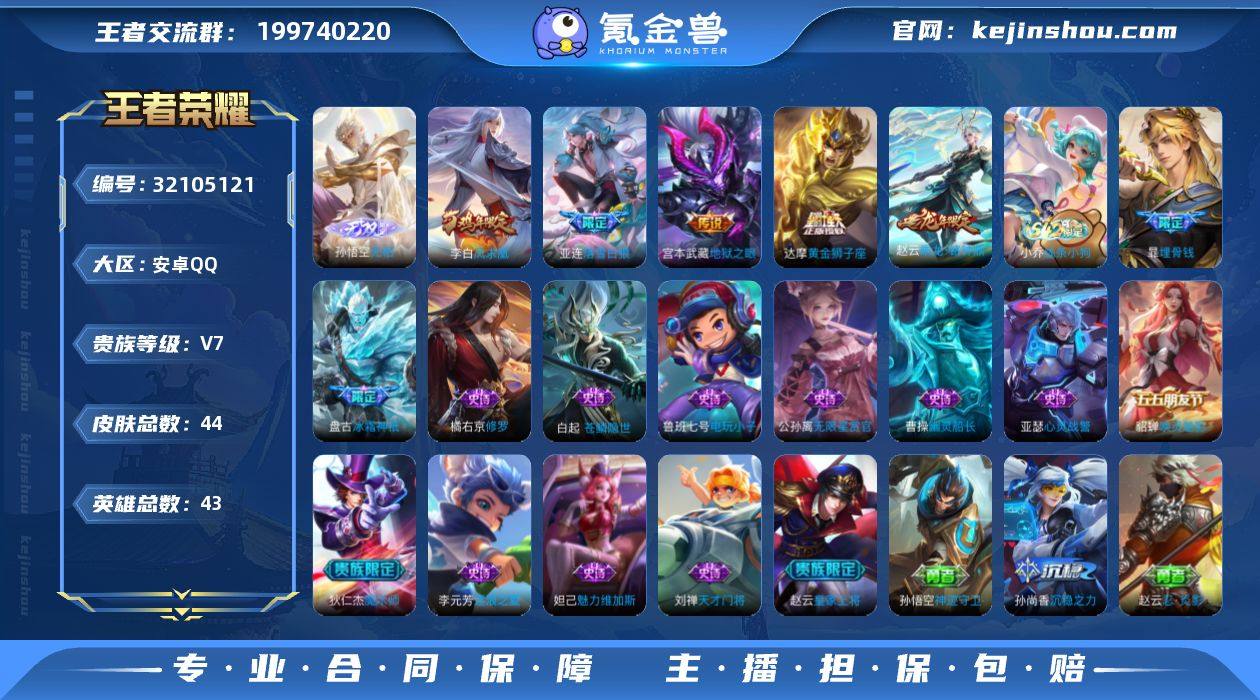 【2无双1珍品7传说 秒换绑不用等】安卓Q-43英雄【2无双】无相 问心剑【1珍品传说】沧流箭【7传说】神骥·越千峰 异界灵契 黄金狮子座 地狱之眼 凤求凰 乘龙·铭钟鼎 落雪白狼【15史诗】线条小狗 埋骨钱 苍鳞隐世 冰霜神祇 幽灵船长 魅力维加斯 魔术师 无限星赏官 修罗 逐浪之夏 天才门将 电玩小子 心灵战警 皇家上将 唤灵魅影【12勇者】线条小狗 舞狮寰 神迹守卫 未来纪元 万象初新 阿尔法小队 兔女郎 沉稳之力 海滩派对 死亡骑士 忍·炎影 玩偶对对碰武则天 营地ID:1527127545