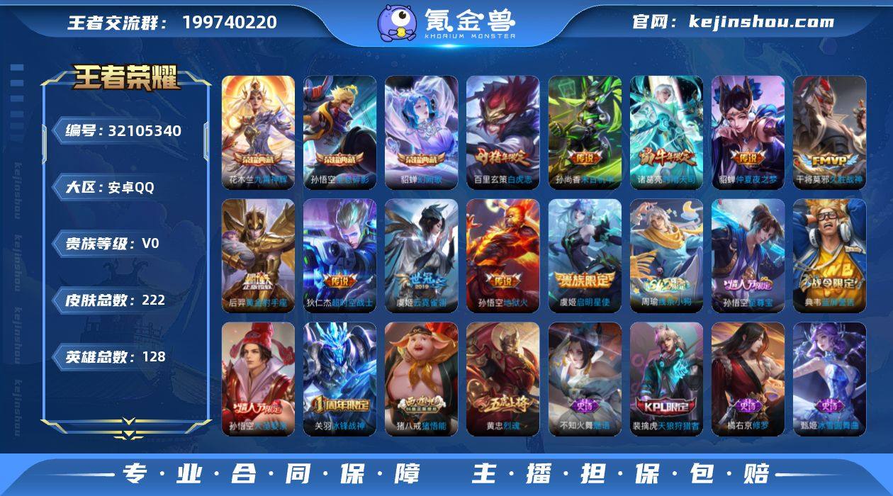 贵族等级:V0 典藏皮肤数:3 珍品无双皮肤数:0 无双皮肤数:0 珍品传说皮肤数:0 传说皮肤数:10 史诗皮肤数:53 皮肤数:222 英雄数:128 段位:星耀 卖家说:王者穿越双v8