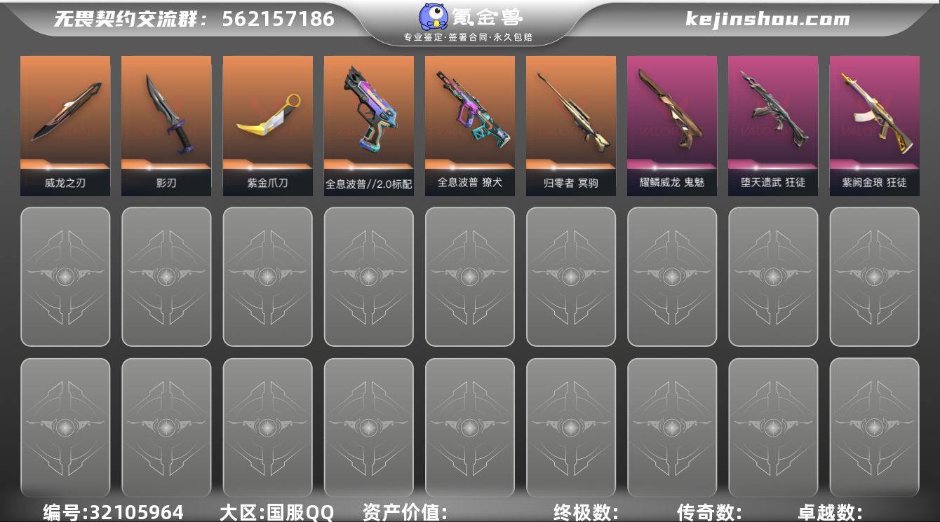 【套装】:《双城之战》收藏套装,VCT 2025 赛季套装,黯夜怪谈套装,般若假面//2.0套装 【英雄】:幻棱,炼狱,维斯,暮蝶,钛狐,壹决,铁臂,捷风,雷兹,幽影,不死鸟,贤者,猎枭,蝰蛇,零,芮娜,奇乐,尚勃勒,霓虹,斯凯,夜露,星礈,盖可,黑梦 【近战 武器】:近战武器-VCT 2025 爪刀,近战武器-鬼丸国纲,近战武器-双城之战 拳套,近战武器-超限闪存 匕首,近战武器-盖亚之愠,近战武器-荒土机兵 热能刀,近战武器-圣石匕首,近战武器-夜刃诡镰,近战武器-诡秘蛇影 军刀,近战武器-神圣领域 战刀 【狂徒】:狂徒-光明哨兵,狂徒-归零者,狂徒-双城之战,狂徒-般若假面//2.0,狂徒-盖亚的复仇,狂徒-日冕雄师,狂徒-紫阙金琅,狂徒-荒土机兵,狂徒-诡秘蛇影 【幻影】:幻影-黯夜怪谈,幻影-砰砰X特攻队,幻影-天界神兵//2.0,幻影-超限闪存,幻影-神圣领域,幻影-纳米打击,幻影-末日之翼 【戍卫】:戍卫-噬影者,戍卫-浮光跃金,戍卫-萌彩剪影,戍卫-逆冲蛮牛,戍卫-月球哨兵,戍卫-折光棱晶 【獠犬】:獠犬-黯夜怪谈,獠犬-般若假面//2.0,獠犬-神圣领域,獠犬-胡桃狂想,獠犬-模拟赫兹,獠犬-逆冲蛮牛 【冥驹】:冥驹-归零者,冥驹-荒土机兵,冥驹-胡桃狂想,冥驹-模拟赫兹,冥驹-星云暗涌 【飞将】:飞将-黯夜怪谈,飞将-沙尘幻旅,飞将-末日之翼 【莽侠】:莽侠-超限闪存,莽侠-诡秘蛇影,莽侠-月球哨兵 【战神】:战神-般若假面//2.0,战神-神圣领域,战神-浮光跃金,战神-萌彩剪影 【奥丁】:奥丁-纳米打击,奥丁-末日之翼 【判官】:判官-诡秘蛇影,判官-萌彩剪影,判官-纳米打击x 【雄鹿】:雄鹿-模拟赫兹,雄鹿-逆冲蛮牛,雄鹿-月球哨兵 【骇灵】:骇灵-荒土机兵,骇灵-沙尘幻旅,骇灵-浮光跃金,骇灵-星云暗涌 【蜂刺】:蜂刺-超限闪存,蜂刺-胡桃狂想,蜂刺-星云暗涌,蜂刺-折光棱晶 【标配】:标配-黯夜怪谈,标配-超能偶像,标配-荒土机兵,标配-浮光跃金,标配-折光棱晶 【正义】:正义-781-A协议,正义-西部未来,正义-超限闪存,正义-纳米打击,正义-月球哨兵 【鬼魅】:鬼魅-盖世英雄,鬼魅-诡秘蛇影,鬼魅-胡桃狂想,鬼魅-模拟赫兹,鬼魅-星云暗涌 【狂怒】:狂怒-般若假面//2.0,狂怒-神圣领域,狂怒-萌彩剪影,狂怒-逆冲蛮牛 【短炮