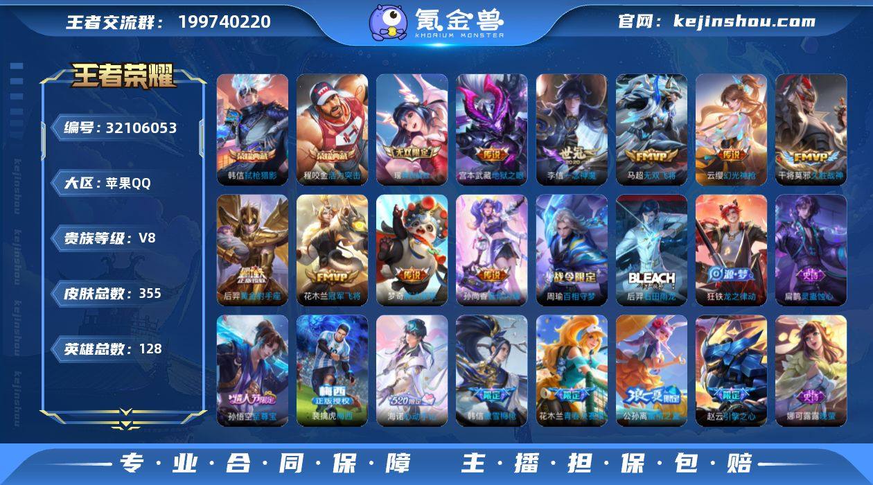 15传说 128英雄 355皮肤 可修改实名 男号 【英雄全皮】娜可露露全皮,孙权全皮,蚩奼全皮,海诺全皮,大禹全皮 【稀有英雄】敖隐(小龙人),大司命,嬴政(始皇帝),韩信(韩跳跳),夏洛特(夏师傅),艾琳,橘右京(橘子),娜可露露(鸟人),不知火舞,赵云,金蝉(唐僧),戈娅 【荣耀水晶】弑枪猎影(韩信典藏),活力突击 【无双皮】真我赫兹(瑶)(瑶无双) 【传说皮】典韦战鼓燎原,幻光神枪,神树通天,黄金射手座,地狱之眼,一念神魔,冠军飞将,久胜战神,无双飞将,胖达荣荣,音你闪耀(rap皮) 【珍宝阁皮】妄想食味,胡桃夹子,优雅恋人 【赛季/战令皮】噬灭天穹(s37),古海寻踪(s33),海盐诗旅(s30),擒涛扼浪(s31),探海日志(s32),顽趣-梦奇,剑破天穹(s35),天穹祈灯(s34),天穹之誓(s36),蔡文姬夏日便利店,虞姬夏日便利店,凯尔特女王(s7),狰(s8),饕餮(s9),烛龙(s10),重明(s11),穷奇(s12),御狮(s13),御霄(s14),御旌(s15),御銮(s16),朔风刀(s17),混沌棋(s18),疑决卦(s19),醍醐杖(s20),原初探秘者(s21),万华元夜(s22),演武夺筹(s23),驱傩正仪(s24),千军破阵(s25),猎兽之王,白昼王子,朔望之晖,蓝屏警告,神迹守卫-钟馗,狮舞东方,赤莲之焰,驯魔猎人,星空之诺,银河之约,潮玩骑士王,火炮绅士,沙漠行僧(s26),幻夜卜梦,吟游魔法,夜都怪侠,金庭之子(s27),大漠名商(s28),云中旅人(s29) 【史诗皮】星界战将,茶境仙,海诺心动手记,撼世英歌,线条小狗-周瑜,九幽镇关,巫礼祀神,万灵启世,光弋星穹,罗小黑战记-百里玄策,百相守梦-周瑜,灵蛊蚀心,龙之律动,石田雨龙,紫霞仙子,黄金分割率,特工魅影,千年之狐,永昼,江河有灵,蒙恬荣光圣徽,冰冠公主,偶像歌手,晚萤,魅语,暗夜猫娘,末日机甲-吕布,猫狗日记-孙策,猫狗日记-大乔,乱世虎臣,节奏热浪,女仆咖啡,摇滚巨星,水果甜心,绅士熊喵,天才门将,星夜王子,心灵骇