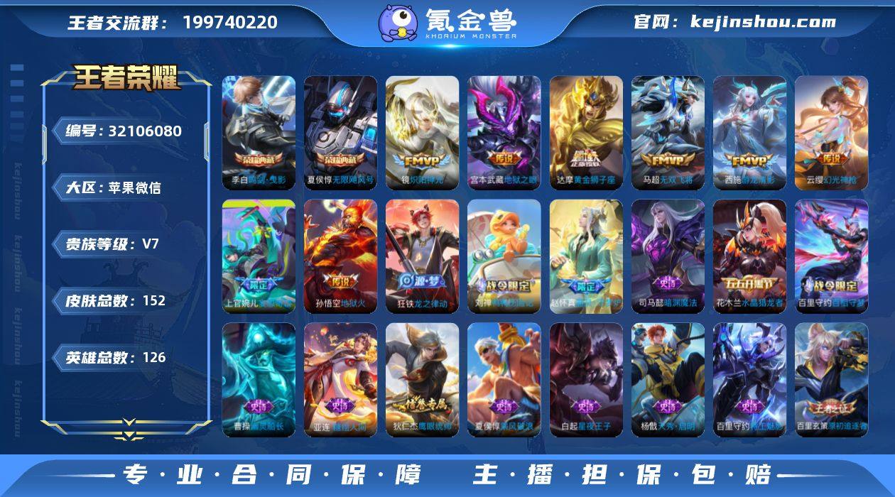 V7 2典藏 1珍品传说 17传说 126英雄 152皮肤 可修改实名 男号 【英雄全皮】影全皮,大禹全皮 【稀有英雄】大司命,韩信(韩跳跳),夏洛特(夏师傅),艾琳,橘右京(橘子),娜可露露(鸟人),不知火舞,赵云,金蝉(唐僧),戈娅 【荣耀水晶】鸣剑·曳影,无限飓风号(高达) 【珍品传说】时之奇旅-孙策 【传说皮】幻光神枪,神树通天,游龙清影(小青龙),黄金狮子座,地狱火,地狱之眼,炽阳神光,无双飞将,时之恋人-刘备(电焊工),妄想奇谈 【珍宝阁皮】万物之道 【赛季/战令皮】噬灭天穹(s37),古海寻踪(s33),探海日志(s32),玲珑珍味,流音漫舞,剑破天穹(s35),天穹之誓(s36),蔡文姬夏日便利店,虞姬夏日便利店,暗影游猎(游乐娃子) 【史诗皮】百相守梦-百里守约,茶境仙,器灵·浮梦炉,糖绘人间,线条小狗-周瑜,九幽镇关,线条小狗-小乔,万灵启世,鸭鸭历险记-刘禅,龙之律动,特工魅影,江河有灵,冰冠公主,乱世虎臣,水果甜心,星夜王子,功夫厨神,暗隐猎兽者,幽灵船长,鬼剑武藏,暗渊魔法,乐园奇幻夜,天秀·启明,乘风破浪,水晶猎龙者,热力回旋,原初追逐者,鹰眼统帅,赏金猎手,无心,未来纪元-赵云 【限定皮】愿照·九州拓(澜年限),愿照·山河定(司空震年限),鸣野蒿,白虎志(电光耗子),怒海麟威,李小龙,山海·玄木吟(马可年限) 【普通皮】谧流熔炉,敬我三分,百相守梦-老夫子,访茗客,铁骨偃魂,苍林狼骑,雪境奇遇-西施,星梦巡礼,爆裂喵拳,玫蓝誓约,功夫炙烤,街头霸王,龙舞盛年,熔金海岸,景韶洛都,魅影绮裳,浪漫序章,虚灵犬护,荣光之誓,罗小黑战记-张良,鹤鸣心笺,苍云破阵,雾影缉谜,鸭鸭历险记-沈梦溪,春野闲踪,灵野札记,命运加冕,小满鸭,聚星闪耀,零食大作战,幻夜行动,威尼斯狂欢,尼罗河女神,完美运算,蔚蓝守将,海滩丽影,海滩派对,皇家上将,魔术师,掌控之力,化身博士,次元突破,大发明家,天使之翼,功夫老勺,阴阳师,汉昭烈帝,兔女郎,死亡骑士,忍·炎影,丁香结,白执事,白...