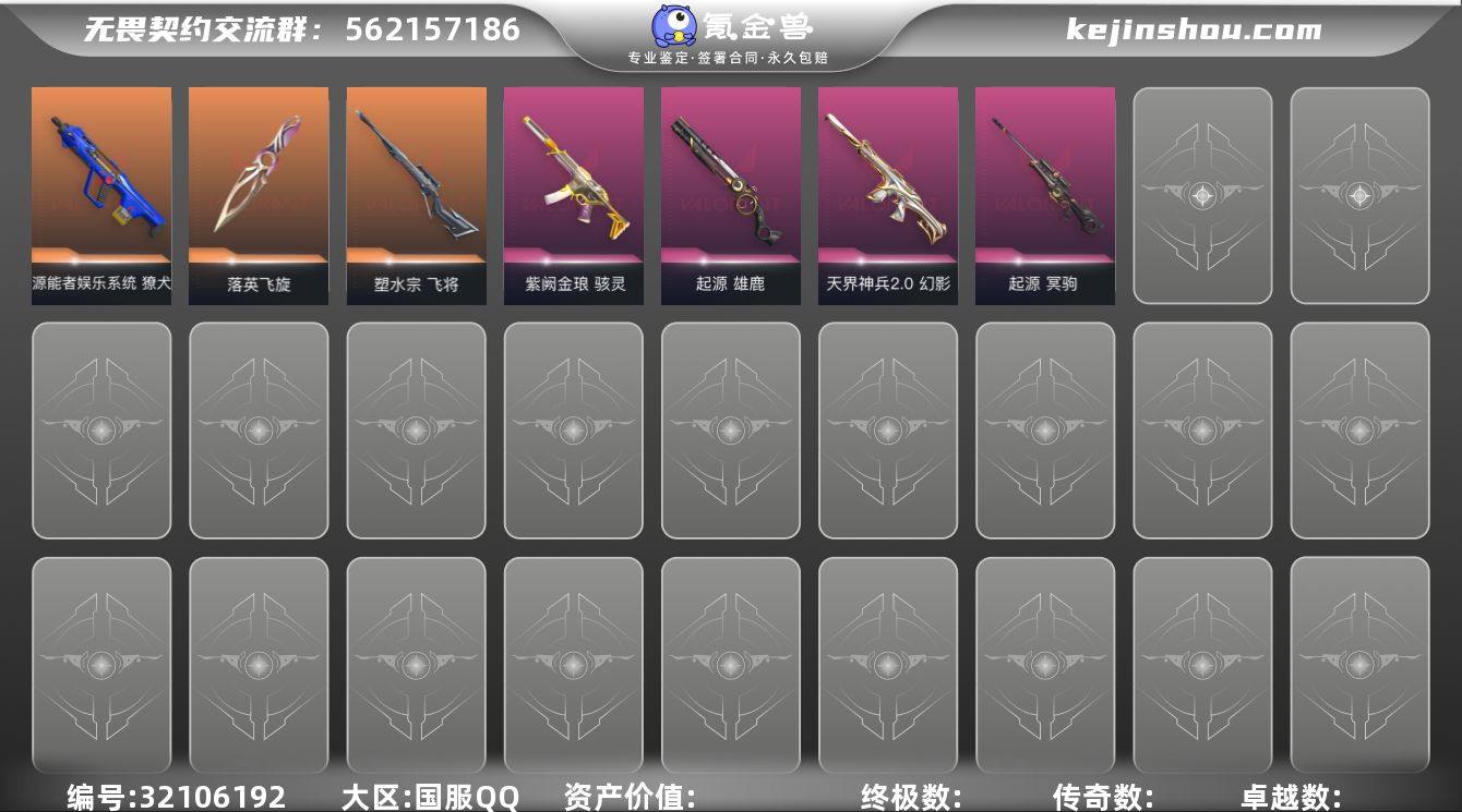 【步枪皮肤】狂徒-噬影者,狂徒-掠影,狂徒-光荣异象,狂徒-混沌序曲,狂徒-洪荒怒焰,狂徒-盖亚的复仇,狂徒-塑水宗,幻影-天界神兵2.0,戍卫-天界神兵,獠犬-源能者娱乐系统