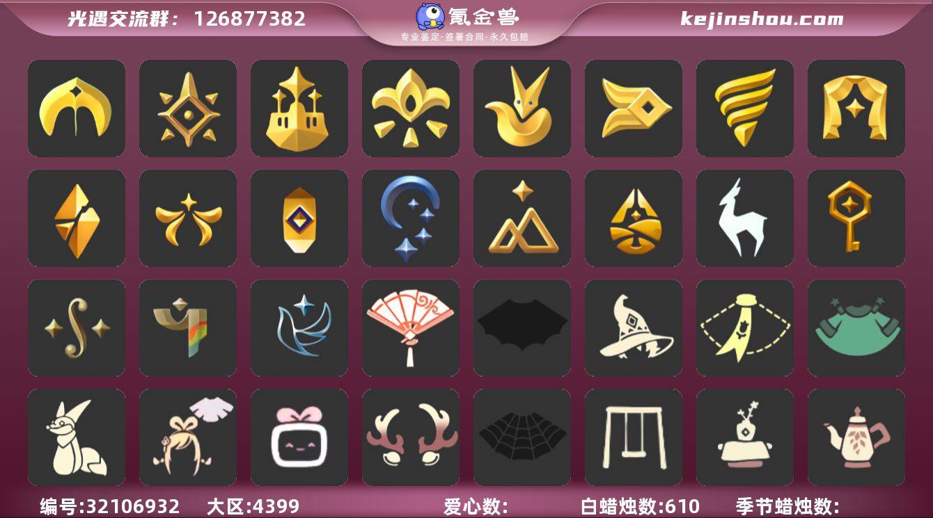 [17387659]VIVO 手机账号 6珍稀物品 20毕业季 6毕业图 610蜡烛 【珍稀物品】白枭(帝企鹅发),阿努比斯(狗头),玫瑰花,透明蝶翼斗,彩虹围巾(五塑彩带斗),鳐鲲斗篷 【季节已毕业】青鸟季,双星季,圣岛季,预言季,梦想季,集结季,小王子季(王子季),风行季,潜海季,表演季,破晓季,欧若拉季(欧若拉),追忆季,夜行季,拾光季,归巢季,九色鹿(九色鹿季),筑巢季,二重奏季,彩染季 【完成地图】晨岛,云野,雨林,霞谷,墓土(暮土),禁阁 【礼包】青衫落拓礼包,女巫裙,水母(水母肩饰),绒帽(温暖绒帽),彩虹帽(多彩绒帽),南瓜(冥龙南瓜),巫师(巫师帽),绊爱(绊爱斗篷)(绊爱礼包),橘子(大橘大利),雪花(雪花发夹),贝壳(贝壳发饰),兔子(玉兔头饰)(玉兔发饰)(兔子发饰),新年耳钉(金鳞耳饰),彩虹耳钉(彩虹耳饰),满月耳坠,枯角(巫树犄角),鹿角(圣诞鹿角),创始人(创始人斗篷),围巾(小王子斗篷)(小王子围巾),星球斗(星球夹克),福娃(福娃礼包)(春之日礼包)(铜钱斗),蝙蝠套(蝙蝠斗篷)(南瓜头),蜘蛛斗(蛛丝斗篷)(蛛网斗篷),瑞雪(瑞雪斗篷)(暖冬瑞雪),白绒金(白雪斗篷),吉他(音韵吉他)(白吉他),红伞(瑞气纸伞),灯笼(中秋灯笼),黄伞(夏日阳伞),献瑞折扇礼包,秋千(情人秋千),跷跷板(情人跷跷板),茶桌(花憩茶桌),茶壶(小憩茶桌),小狐狸(狐狸背包),小船(情人小船),雪花球(雪花水晶球),大铁头 【裤子】风行毕业裤子(羽袖长袍),筑巢季·裤子(设计师长袍),王子服(小王子套装),蓝绿裤(高领舞服),武士裤,背带裤,搓澡巾,击剑裤 【面具】黄眉企鹅面具,夜行毕业面具(棕熊面具),呼吸面具(潜水面具),辉光羚羊面具,阿努比斯,凤凰面具 【面饰】黑框眼镜(粗框眼镜),青鸟毕业面饰(青鸟面饰),红耳机 【项链】围巾(肩带) 【发型】小王子发型,单侧绑发(单边小辫),留辫蘑菇头,飞天盘发(九色鹿丸子头),虚荣,归巢毕业发型(五塑彩羽发),若笠(箬笠) 【头饰】平顶帽,蓝色音乐会(蓝色音...