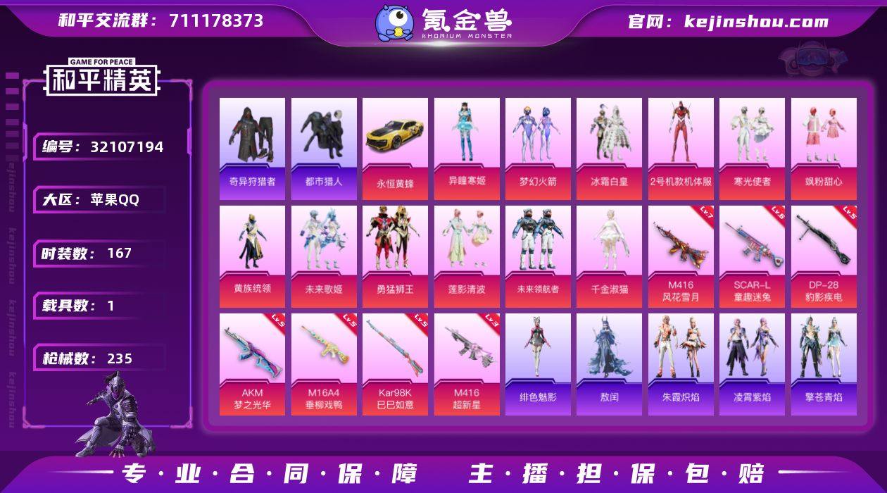 YZJ15217 可二次 不能转区 安卓封区 钱包不可用 苹果Q-4稀有1载具12粉装7特效枪15热门166套装234枪皮 77817热力值 精氪号 福州NV粉丝标 1098物资币 3级M4超新星 红螳螂 梦幻火箭 未来歌姬 莲影清波 冰霜白皇 都市 小丑鱼 奇异狩猎者 鲨鱼服 NV战队服 粉熊包 猫包 满级M4风华雪月 6级斯嘎童趣迷兔 5级AK梦之光华 13印记 历史绝世王牌24星 【4稀有】 奇异狩猎者 AKM-缤纷海域 AKM-百万伏特 都市猎人 【1载具】 永恒黄蜂 【12粉装】 红螳螂 梦幻火箭 千金淑猫 异瞳寒姬 未来歌姬 未来领航者 飒粉甜心 黄族统领 莲影清波 勇猛狮王 冰霜白皇 寒光使者 【7特效枪】 M416-超新星 (3级) Kar98K-巳巳如意 (5级) DP-28-豹影疾电 (5级) SCAR-L-童趣迷兔 (6级) AKM-梦之光华 (5级) M16A4-垂柳戏鸭 (5级) M416-风花雪月 (7级) 【15热门】 小丑鱼 龟仙人 呆萌铁蟹 鹰眼刺客 迅捷狂鲨 NV战队服 漫步者 韶华初心 破蛋小黄鸡 英勇保护者 弄潮海豚 AKM-奇异狩猎者 M762-奇异狩猎者 M24-奇异狩猎者 S686-奇异狩猎者 【3飞行器】 林间仙鹿飞行器 黄族统领飞行器 星夜魔法师飞行翼 【3头盔】 梦幻火箭头盔 百万伏特头盔 深海小丑鱼头盔 【5背包】 百万伏特背包 幻影战神背包 萌熊伴侣背包 深海小丑鱼背包 神秘黑猫背包 营地ID:903315020
