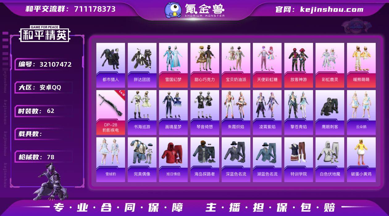 YZJ15270-可二次-安卓Q-1稀有8粉装2特效枪9热门62套装78枪皮 23321热力值 极品公主身法号雪国 巧克力三姐妹 暖熊萌萌 彩虹鹿灵 都市 胖达团团 西部牛仔红面罩 黑色ROCK长袖T恤 萌趣趣伙伴 4印记 历史绝世王牌14星 【1稀有】 都市猎人 【8粉装】 雪国幻梦 宝贝奶油派 天使彩虹糖 甜心巧克力 放客神游 暖熊萌萌 罪夜之冕 彩虹鹿灵 【2特效枪】 DP-28-豹影疾电 (5级) Mk14-福马献瑞 (5级) 【9热门】 鹰眼刺客 胖达团团 NV战队服 西部牛仔 漫步者 破蛋小黄鸡 MK47-林间仙鹿 汤姆逊-林间仙鹿 GROZA-林间仙鹿 【2头盔】 雪国精灵头盔 甜心宝贝头盔 【2背包】 雪国精灵背包 甜心宝贝背包 营地ID:1002787224