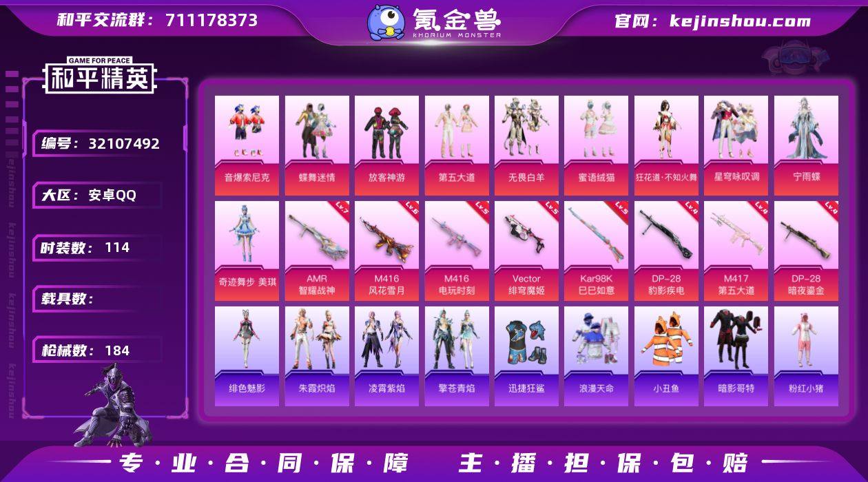 YZJ15230-可二次-安卓Q-1稀有10粉装10特效枪8热门【精品女号 TT粉丝logo 简易三字ID:伤天礼 蝶舞迷情 第五大道 蜜语绒猫 不知火舞 宁雨蝶 奇迹舞步美琪 发光眼罩 小丑鱼 粉螳螂 TT战队服 晶辉守护 情公主 鲨鱼裤 红眼罩 狂沙 天命 6级M4风花雪月 菠萝头 2款飞行器】114套装184枪皮 56705热力值 14印记 历史超级王牌20星 【1稀有】 浪漫天命 【10粉装】 蝶舞迷情 狂花道·不知火舞 宁雨蝶 奇迹舞步美琪 蜜语绒猫 星穹咏叹调 无畏白羊 放客神游 第五大道 音爆索尼克 【10特效枪】 M416-电玩时刻 (5级) Kar98K-巳巳如意 (5级) Vector-绯穹魔姬 (5级) DP-28-豹影疾电 (4级) AMR-智耀战神 (7级) M417-第五大道 (4级) DP-28-暗夜鎏金 (4级) M416-风花雪月 (6级) Mk14-福马献瑞 (4级) ACE32-萌骑漫游 (2级) 【8热门】 8号机 小丑鱼 晶辉守护 迅捷狂鲨 TT战队服 暗影哥特 粉红小猪 狂沙舞者 【1飞行器】 拂晓神骑飞行器 【2头盔】 梦幻火箭头盔 深海小丑鱼头盔 【2背包】 梦幻火箭背包 深海小丑鱼背包 营地ID:926647915