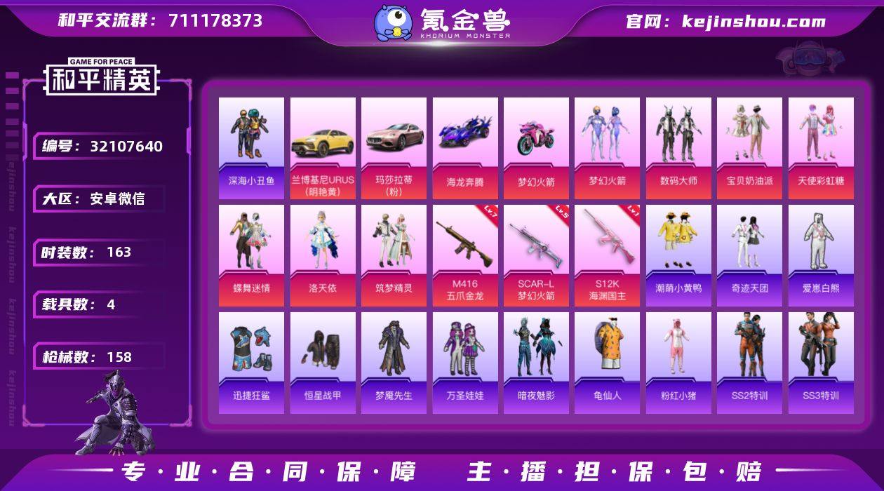YZJ14815-无二次- 安卓V-1稀有4载具7粉装3特效枪21热门163套装158枪皮 60275热力值 精氪小女号 4款载具不重复 新101 巧克力二姐妹 洛天依 花仙子(蝶舞迷情)奇迹天团 小黄鸭 爱崽白熊 深海小丑鱼 鲨鱼服 粉玛莎 粉熊包 满级M4五爪 5级斯嘎梦幻 16印记 历史超级王牌10星 【1稀有】 AKM-百万伏特 【4载具】 玛莎拉蒂粉色 兰博SUV黄色 海龙奔腾 双人摩托梦幻火箭 【7粉装】 梦幻火箭 蝶舞迷情 宝贝奶油派 天使彩虹糖 洛天依 筑梦精灵 数码大师 【3特效枪】 SCAR-L-梦幻火箭 (5级) M416-五爪金龙 (7级) S12K-海渊国主 (1级) 【21热门】 奇迹天团 龟仙人 星光纪元 雪山精英 潮萌小黄鸭 爱崽白熊 梦魇先生 万圣娃娃 奇迹天团 迅捷狂鲨 深海小丑鱼 SS1特训 团圆交子 瑞龙福将 粉红小猪 豚鼠丹丹 玄武圣者 青龙圣者 破蛋小黄鸡 极速红龙 M762-瑞龙福将 【2飞行器】 梦幻火箭飞行器 春暖花开飞行器 【5头盔】 梦幻火箭头盔 金曜白虎头盔 甜心宝贝头盔 百万伏特头盔 金风玉露头盔 【5背包】 梦幻火箭背包 甜心宝贝背包 百万伏特背包 幻影战神背包 萌熊伴侣背包 营地ID:910775699