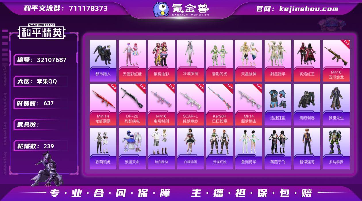 【特价出售】钱包无法注销苹果Q-2稀有7粉装7特效枪12热门155套装239枪皮 70636热力值 10印记 历史卓越王牌11星 【2稀有】 都市猎人 浪漫天命 【7粉装】 天使彩虹糖 天星战神 冷漠罗丽 射星猎手 缤纷油彩 炙焰红王 碧影闪光 【7特效枪】 M416-五爪金龙 (7级) SCAR-L-纯梦嫁纱 (5级) M416-电玩时刻 (5级) Mini14-龙虾霸霸 (6级) Kar98K-巳巳如意 (5级) DP-28-豹影疾电 (5级) Mk14-甜梦熊击 (5级) 【12热门】 龟仙人 梦魇先生 鹰眼刺客 软萌银虎 迅捷狂鲨 暗夜契约 纯白誓言 漫步者 破蛋小黄鸡 军刀雅典娜 M762-奇异狩猎者 S686-奇异狩猎者 【1飞行器】 太空嘟嘟飞行器 【4头盔】 童趣迷兔头盔 百万伏特头盔 金风玉露头盔 深海小丑鱼头盔 【3背包】 深海小丑鱼背包 深海曼妙背包 神秘黑猫背包