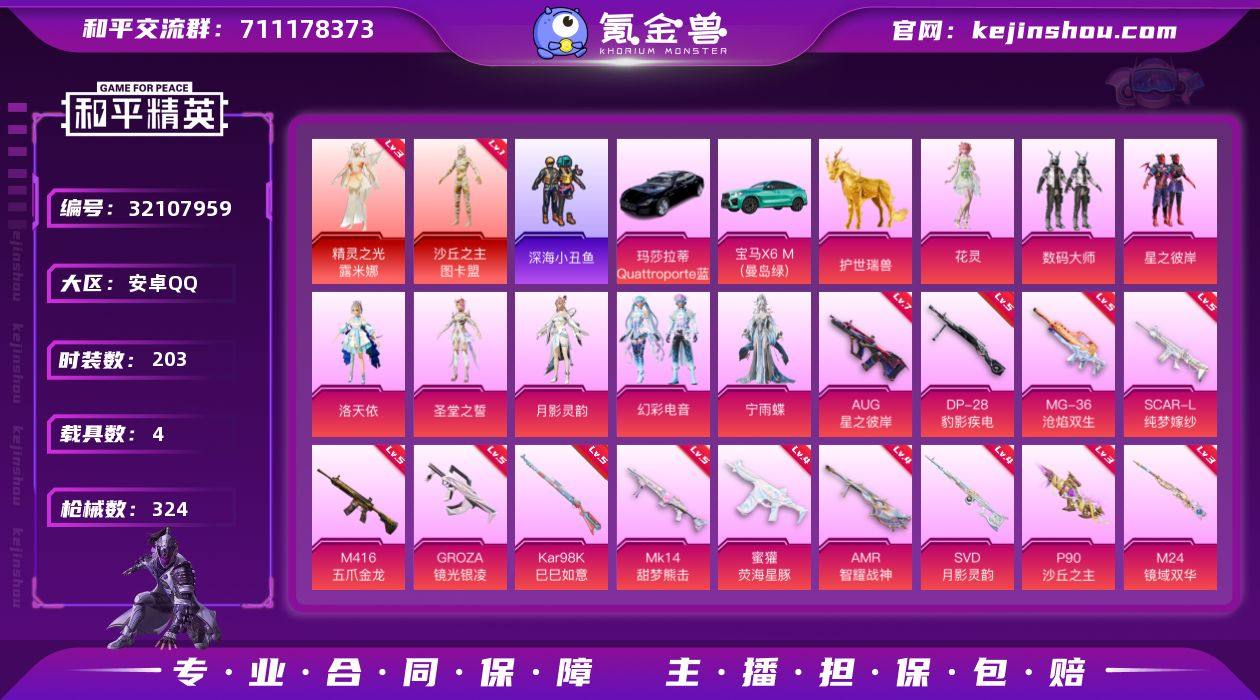 YZJ15278-可二次 安卓Q-【极品多红装素材女号 地铁满天赋 满级AUG彼岸 双字ID婴菇 84级收藏家 2璀璨场景-东方绮梦/喜乐灯会 伙伴-灵珠宝驹 金麒麟 法老图卡盟 女王艾丽娅 精灵露米娜 圣堂 洛天依 宁雨蝶 花灵 月影 美羊羊 甜心蒙太奇 风迹短诗 蓝螳螂 贝斯之夜 深海小丑鱼 彩虹兔 云朵鹅 雪绒豹 】3红装4载具8粉装18特效枪7热门203套装324枪皮 112621热力值 14印记 历史超级王牌11星 【3红装】 暮色玫影-艾丽娅 (3级) 精灵之光-露米娜 (3级) 沙丘之主-图卡盟 (1级) 【4载具】 暮色幽蹄 玛莎拉蒂Q蓝色 宝马X6M(曼岛绿) 护世瑞兽 【8粉装】 圣堂之誓 宁雨蝶 洛天依 花灵 月影灵韵 幻彩电音 数码大师 星之彼岸 【18特效枪】 M416-五爪金龙 (5级) SCAR-L-纯梦嫁纱 (5级) SCAR-L-灵驹仙姬 (1级) P90-沙丘之主 (3级) AKS-74U-森灵之息 (4级) Kar98K-巳巳如意 (5级) MG-36-沧焰双生 (5级) DP-28-豹影疾电 (5级) SVD-月影灵韵 (4级) 蜜獾-荧海星豚 (4级) Mk14-甜梦熊击 (5级) AMR-智耀战神 (4级) M24-镜域双华 (3级) GROZA-镜光银凌 (5级) AUG-星之彼岸 (7级) AKS-74U-森灵之息 (4级) Mk14-福马献瑞 (4级) ACE32-萌骑漫游 (2级) 【7热门】 Mark.06 龟仙人 深海小丑鱼 机械英豪 破蛋小黄鸡 军刀雅典娜 Kar98K-终极赛罗 【3飞行器】 龙翔九天飞行器 星之彼岸飞行器 镜光幻境飞行翼 【1头盔】 甜蜜誓约头盔 【1背包】 古堡领主背包 营地ID:718840905
