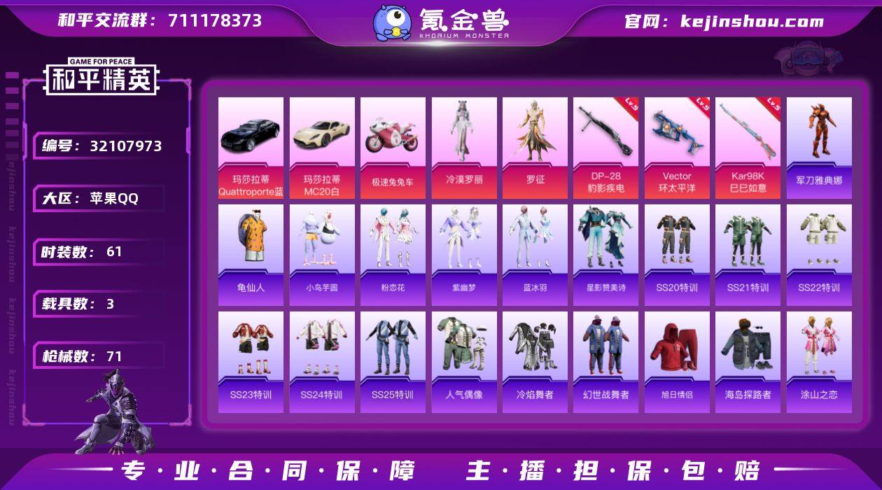 地铁满天赋苹果 手Q-2粉装-3特效枪-3载具-1粉色飞行器-26002热力值-8王牌印记-61套装-71枪皮【热门品类】:角色-军刀雅典娜,套装-龟仙人【粉色套装】:角色-冷漠罗丽,角色-罗征【粉色枪皮等级】:Vector-环太平洋(五级),Kar98K-巳巳如意(五级),DP-28-豹影疾电(五级)【粉色载具】:玛莎拉蒂MC20(星石白),玛莎拉蒂Quattroporte(夜幕蓝),极速兔兔车【粉色枪皮】:Vector-环太平洋,Kar98K-巳巳如意,DP-28-豹影疾电