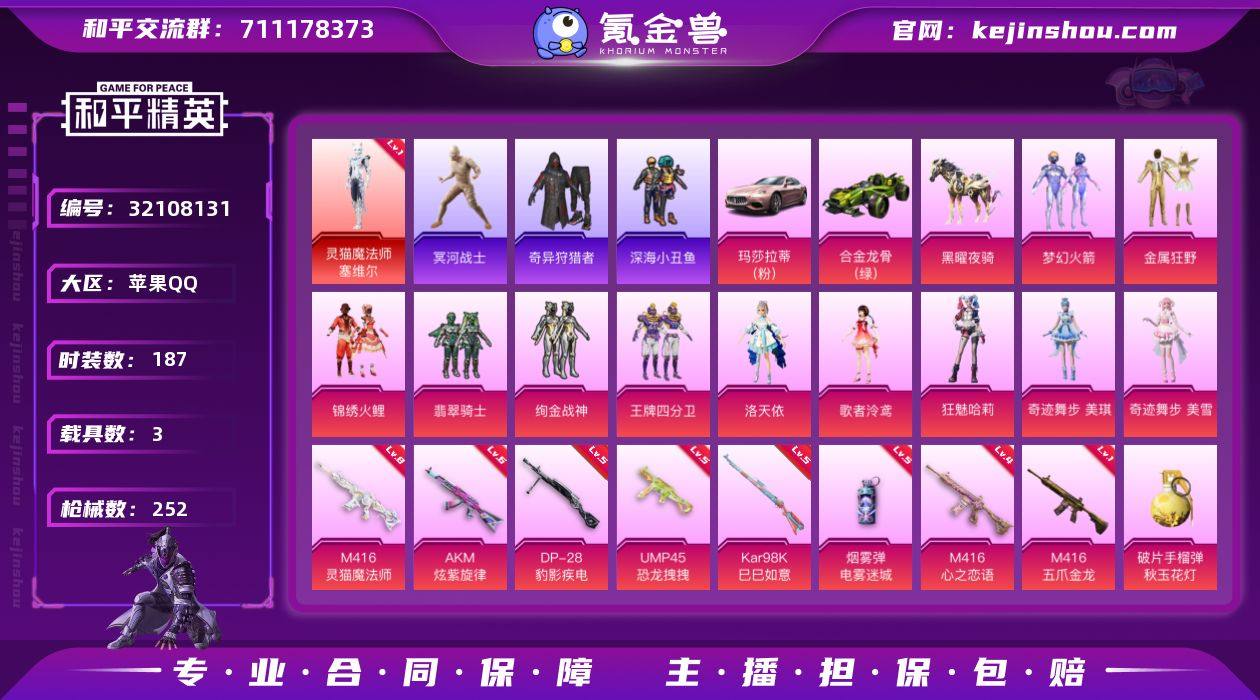 YZJ15394 可二次 苹果Q-1红装5稀有3载具11粉装10特效枪29热门 身法素材女号 8级m4灵猫 塞维尔1级 木乃伊 哈莉 新101 美雪 美琪 洛天依 蜘蛛侠 小黄鸭 巡查衣 m4黄金龙骨 国宝头盔 小熊背包 187套装252枪皮 94456热力值 14印记 历史绝世王牌13星 【1红装】 灵猫魔法师-塞维尔 (1级) 【5稀有】 木乃伊 奇异狩猎者 巡查衣 M416-黄金龙骨 AWM-黄金龙骨 【3载具】 玛莎拉蒂粉色 合金龙骨绿色 黑曜夜骑 【11粉装】 狂魅哈莉 梦幻火箭 奇迹舞步美雪 奇迹舞步美琪 洛天依 金属狂野 歌者泠鸢 锦绣火鲤 翡翠骑士 绚金战神 王牌四分卫 【10特效枪】 M416-五爪金龙 (1级) M416-心之恋语 (4级) M416-灵猫魔法师 (8级) AKM-炫紫旋律 (6级) Kar98K-巳巳如意 (5级) DP-28-豹影疾电 (5级) Mk14-福马献瑞 (3级) UMP45-恐龙拽拽 (5级) 破片手榴弹-秋玉花灯 (6级) 烟雾弹-电雾迷城 (5级) 【29热门】 龟仙人 雪山精英 潮萌小黄鸭 软萌银虎 激萌罗小黑 深海小丑鱼 浪漫波比 金羽特工 怪笑疯兔 团圆交子 瑞龙福将 粉红小猪 粉甜马卡龙 娴静芝兰 静谧青瓷 机械英豪 风华少年志 白月香洋装 新侠客行 黑色刀锋 极速红龙 弄潮海豚 不夜海上花 AKM-奇异狩猎者 M762-奇异狩猎者 M762-瑞龙福将 M24-奇异狩猎者 S686-奇异狩猎者 Kar98K-古堡领主 【2飞行器】 锦绣火鲤飞行器 梦幻火箭飞行器 【5头盔】 国宝胖达头盔 梦幻火箭头盔 百万伏特头盔 幻影战神头盔 金羽特工头盔 【8背包】 九霄背包 梦幻火箭背包 百万伏特背包 金风玉露背包 萌熊伴侣背包 深海小丑鱼背包 神秘黑猫背包 金羽特工背包 营地ID:727305916