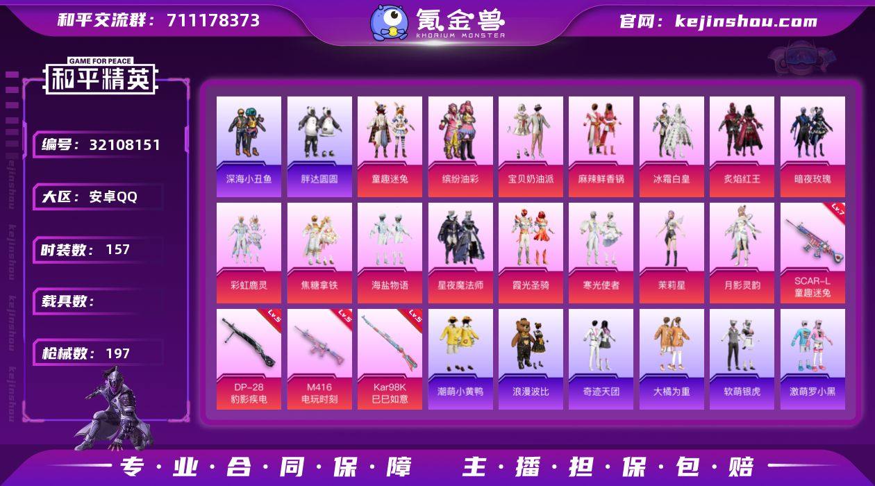 YZJ15301-可二次-安卓Q-1稀有15粉装4特效枪28热门-号内点卷1868-【优质公主号 猪妹 童趣迷兔 胖达 宝贝奶油派 焦糖拿铁 彩虹鹿灵 兔兔白日梦 晶辉守护 小丑鱼 浪漫波比 小黄鸭 双马尾 粉雾星云 大橘为重 激萌罗小黑 童真绒兔 艾伦沃克 天命 满级SCAR-L童趣迷兔 甜梦小狐飞行器 童趣迷兔背包头盔 小拳击手-伙伴 4款飞行器】157套装197枪皮 68195热力值 15印记 历史超级王牌12星 【1稀有】 浪漫天命 【15粉装】 茉莉星 宝贝奶油派 月影灵韵 缤纷油彩 麻辣鲜香锅 童趣迷兔 冰霜白皇 星夜魔法师 炙焰红王 霞光圣骑 海盐物语 焦糖拿铁 暗夜玫瑰 彩虹鹿灵 寒光使者 【4特效枪】 M416-电玩时刻 (5级) Kar98K-巳巳如意 (5级) DP-28-豹影疾电 (5级) SCAR-L-童趣迷兔 (7级) 【28热门】 小丑鱼 奇迹天团 龟仙人 星光纪元 潮萌小黄鸭 晶辉守护 软萌银虎 兔兔白日梦 恶魔喵喵 奇迹天团 激萌罗小黑 深海小丑鱼 大橘为重 浪漫波比 胖达圆圆 团圆交子 瑞龙福将 粉红小猪 薄荷蓝莓 破蛋小黄鸡 风华少年志 新侠客行 软嫩糖心蛋 黑色刀锋 M762-瑞龙福将 AUG-魔法学院 Mini14-林间仙鹿 汤姆逊-林间仙鹿 【3飞行器】 绝色倾城飞行器 星夜魔法师飞行翼 甜梦小狐飞行器 【4头盔】 童趣迷兔头盔 九霄头盔 甜心宝贝头盔 金风玉露头盔 【8背包】 九霄背包 精灵迷巫背包 甜心宝贝背包 金属狂野背包 缤纷油彩背包 潮萌小黄鸭背包 深海曼妙背包 神秘黑猫背包 营地ID:597981619